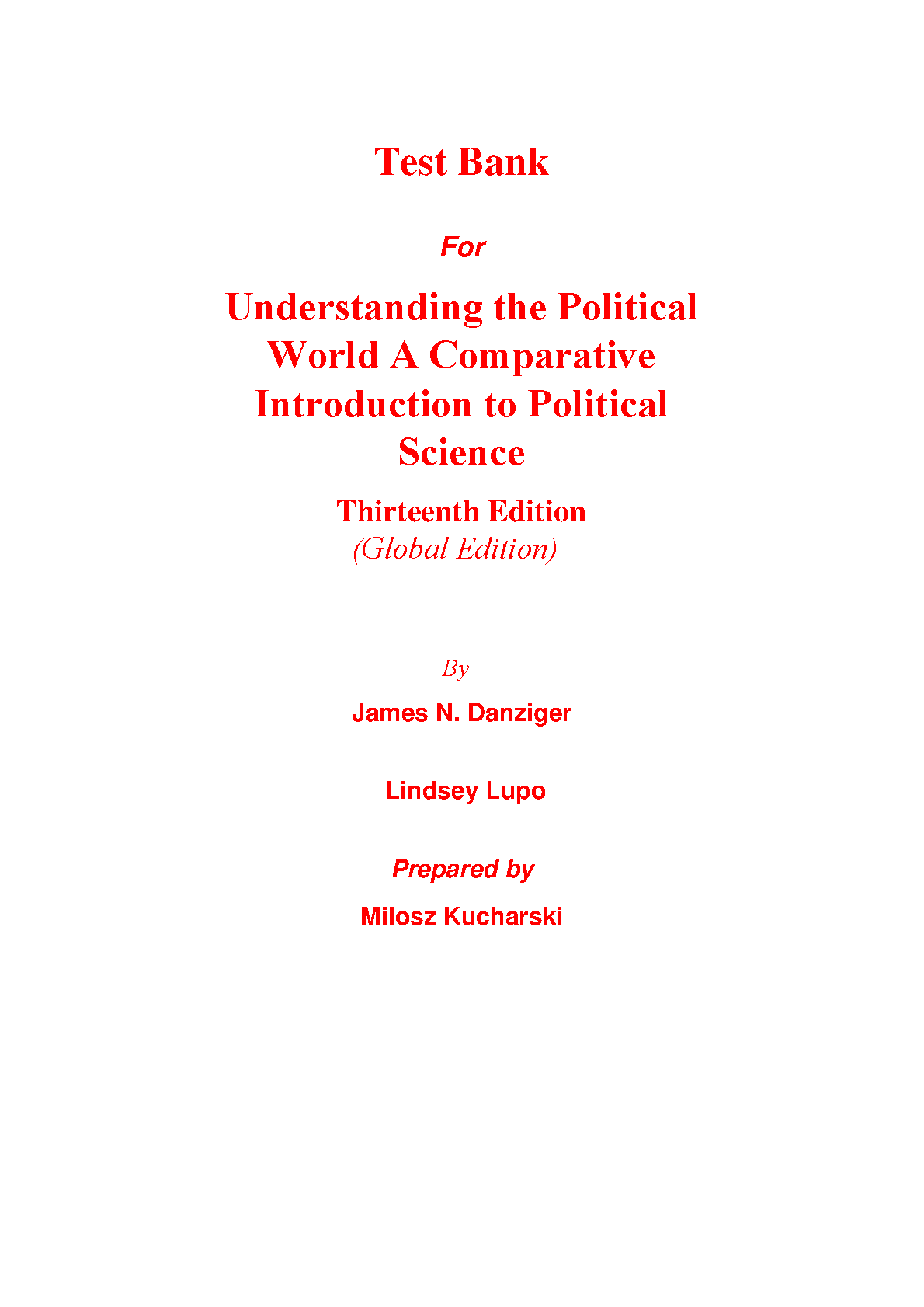 Test Bank for Understanding the Political World: A Comparative Introduction to Political Science, 13th Edition (Global Edition) by James N. Danziger and Lindsey Lupo