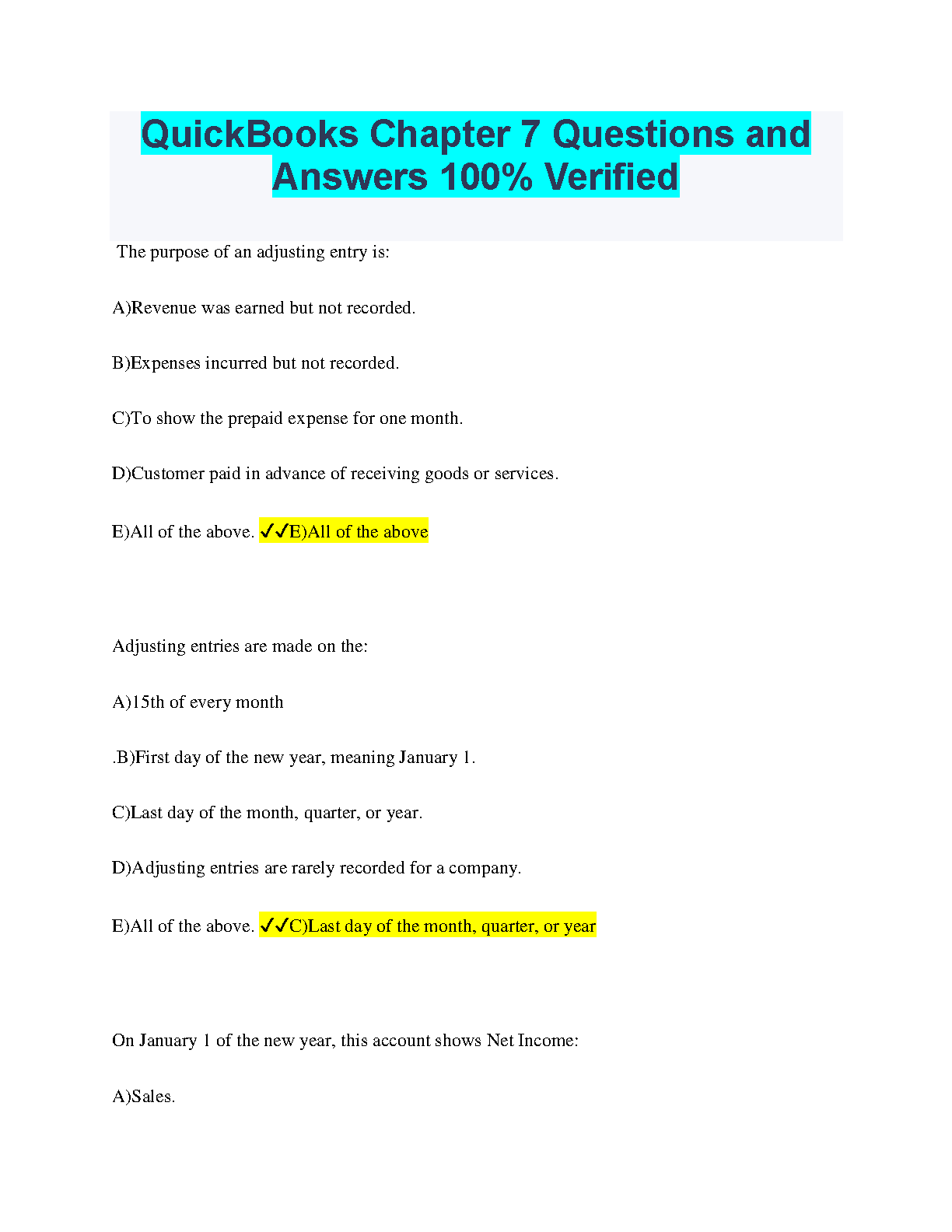 QuickBooks Chapter 7 Questions and Answers 100% Verified: Ace Your Accounting Exam with This Latest Guide