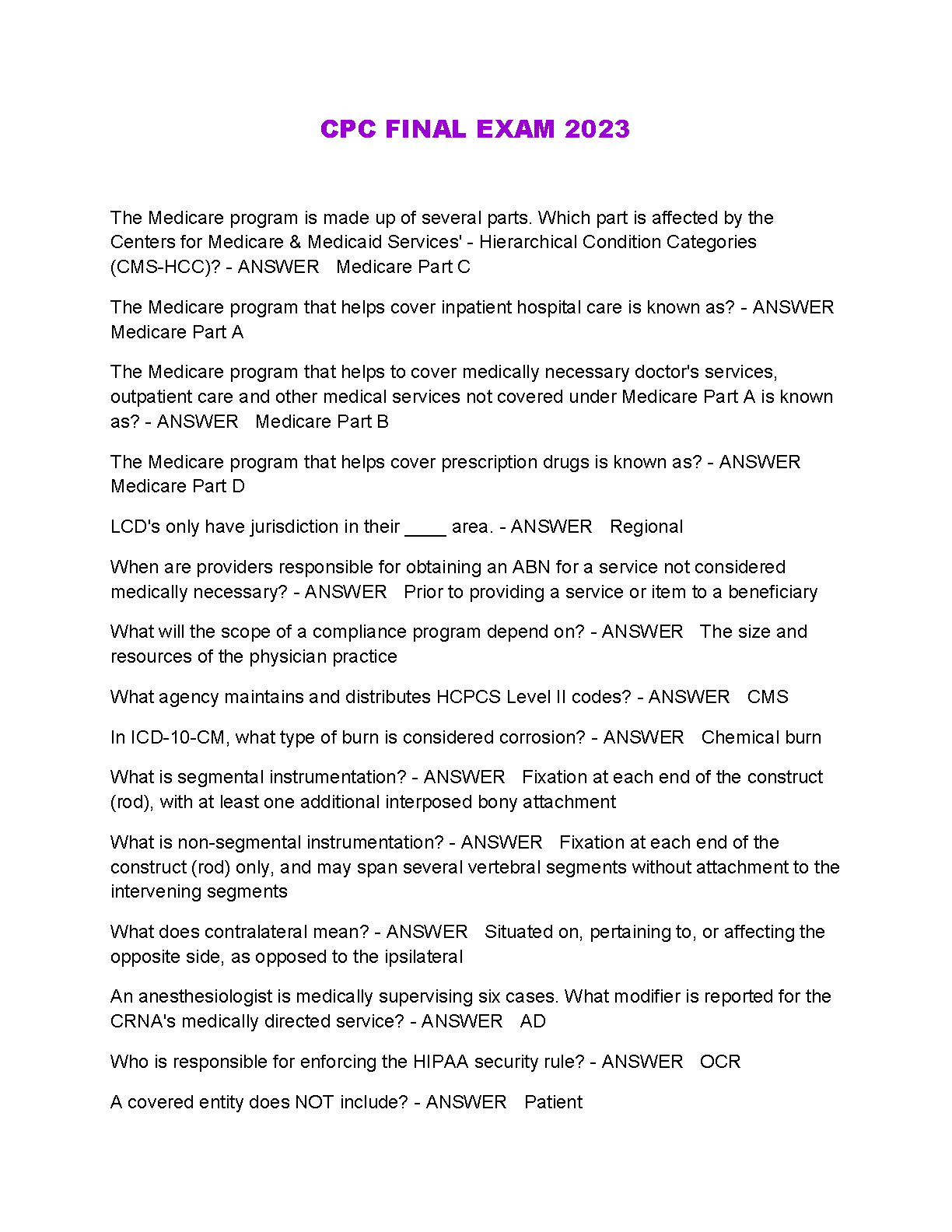CPC Final Exam 2023: Practice Questions & Answers for Success on Your First Attempt