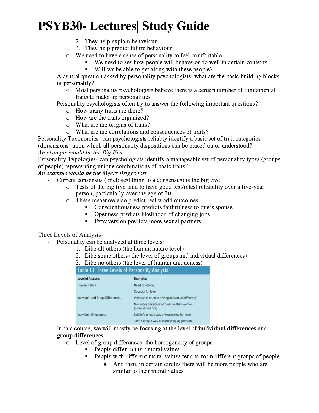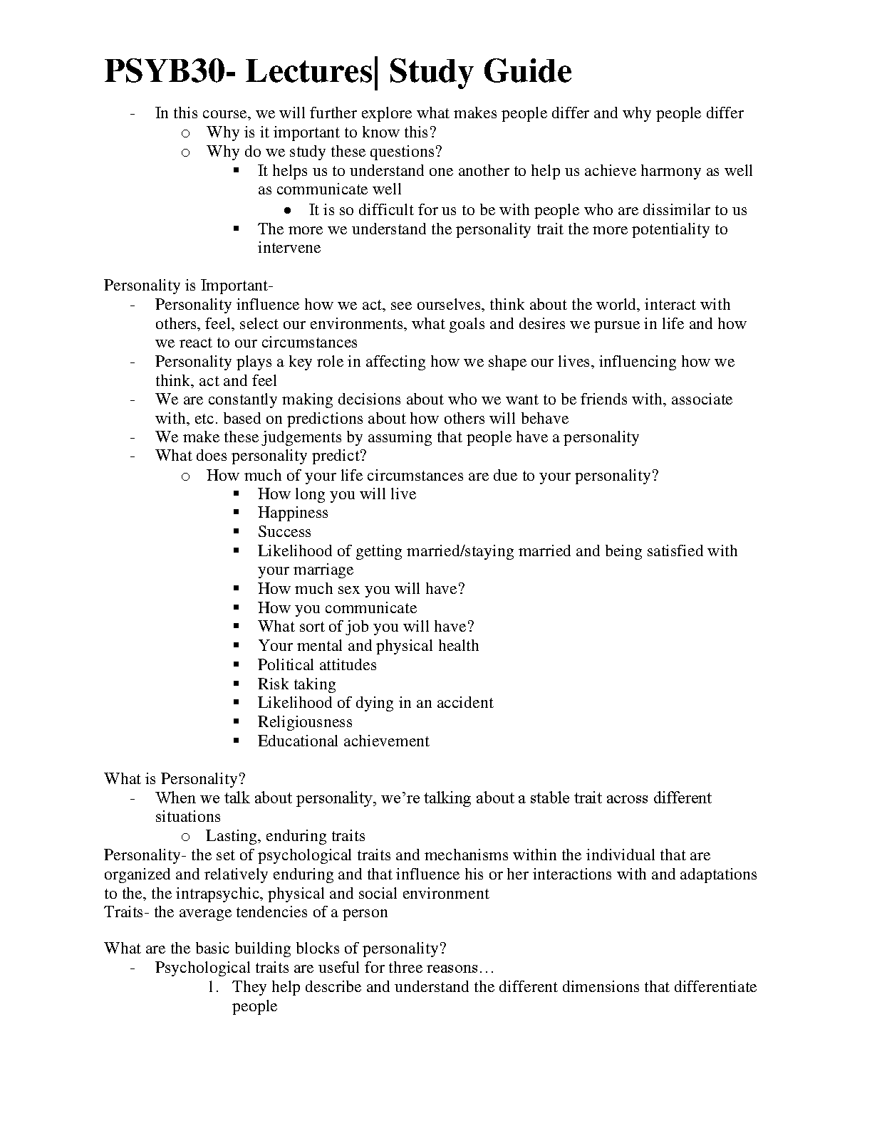PSY B30 - Lectures Study Guide: A Comprehensive Guide to Understanding How People Differ: by [Find the complete author name here]