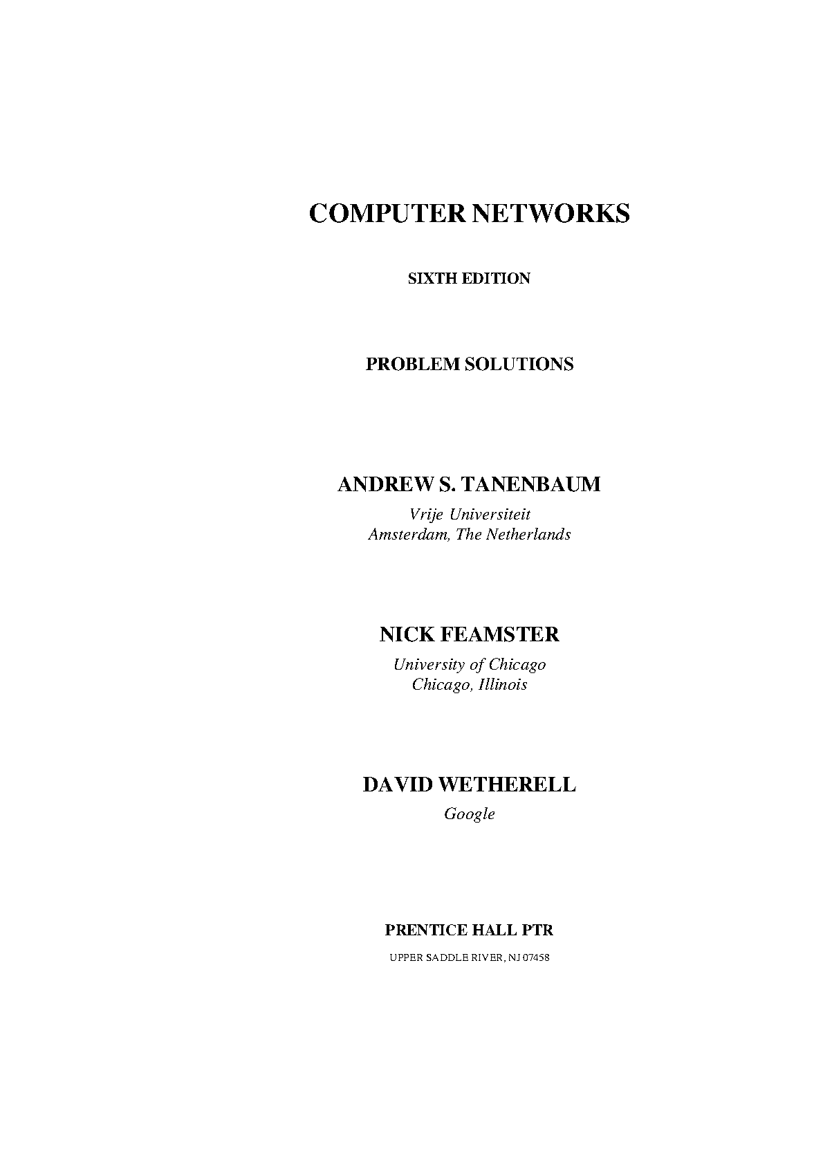 Computer Networks 6th Edition by Andrew S Tanenbaum, Nick Feamster, David Wetherall - Solutions Manual