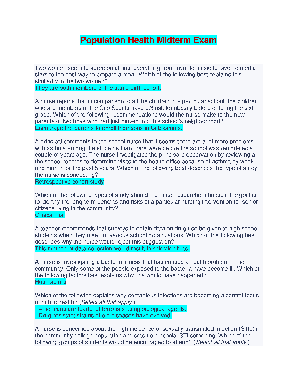 Population Health Midterm Exam: 2024/2025 Edition, Complete Guide to Ace Your Exam on the First Attempt