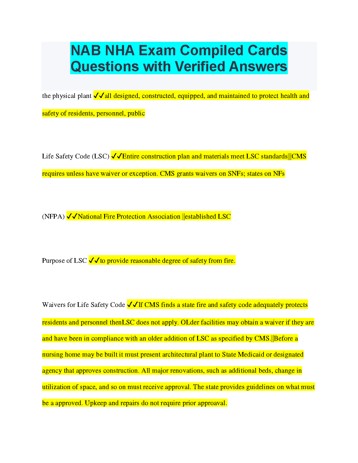 NAB NHA Exam Compiled Cards Questions with Verified Answers for 2024/2025