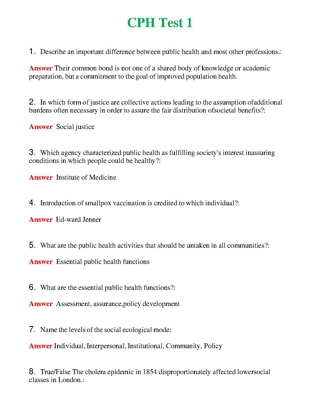 CPH Test 1: A Comprehensive Guide to Public Health Fundamentals