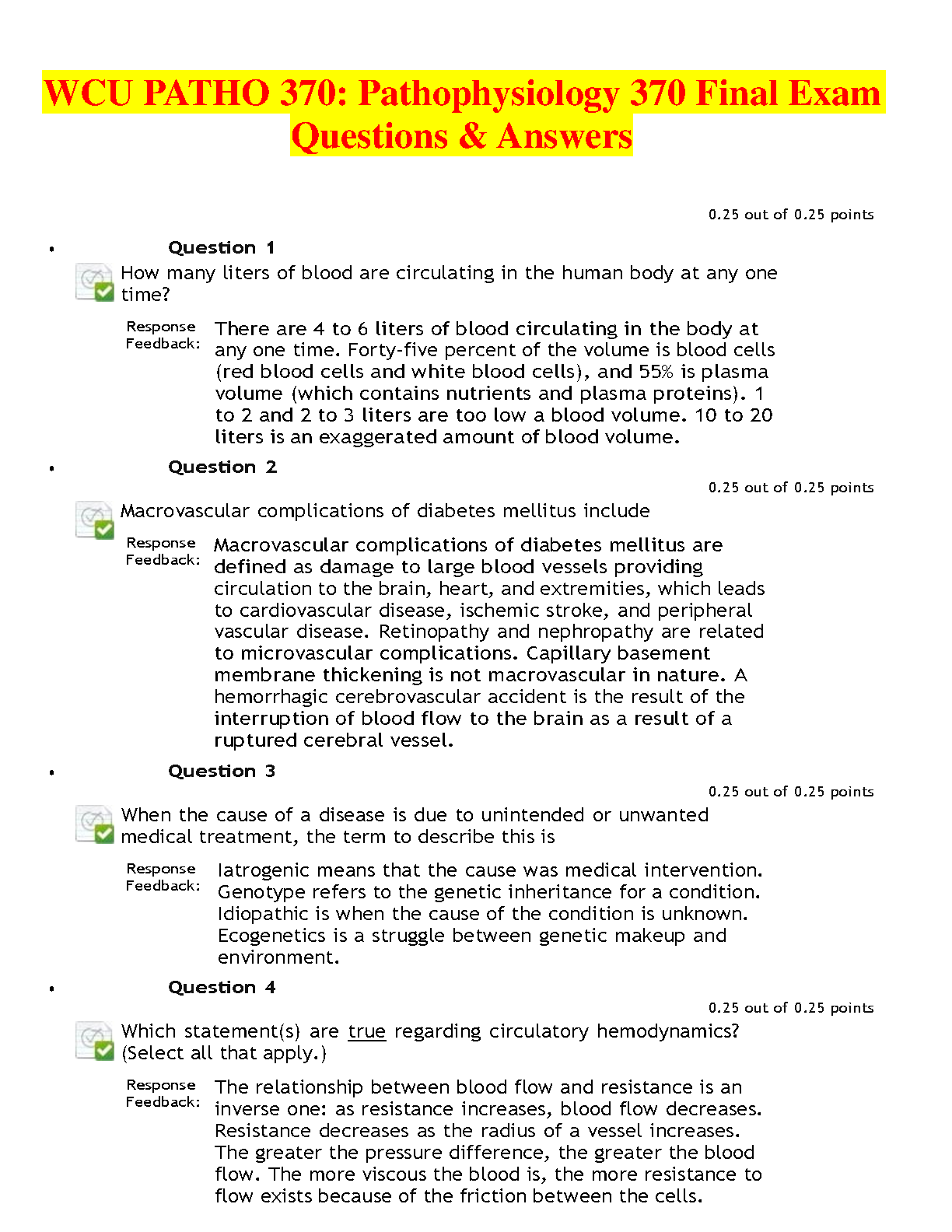 WCU Pathophysiology 370 Final Exam Questions & Answers 2024/2025 - Pass Your Exam on the First Attempt and Avoid Resits