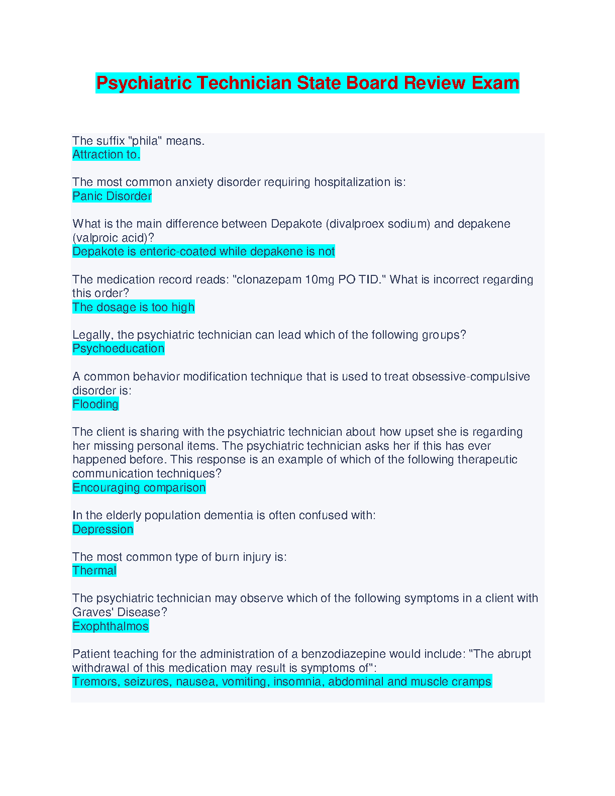 Boost your success in your Psychiatric Technician State Board exam with this comprehensive collection of review questions and answers. Master crucial concepts and prepare thoroughly to excel on your first attempt and avoid resits. Get access to a wide range of practice questions covering key topics in the field, allowing you to assess your understanding and identify areas requiring further attention. Our study materials are designed to help you build confidence and improve your performance. Prepare for a rewarding career in psychiatric care by achieving your best on the exam.