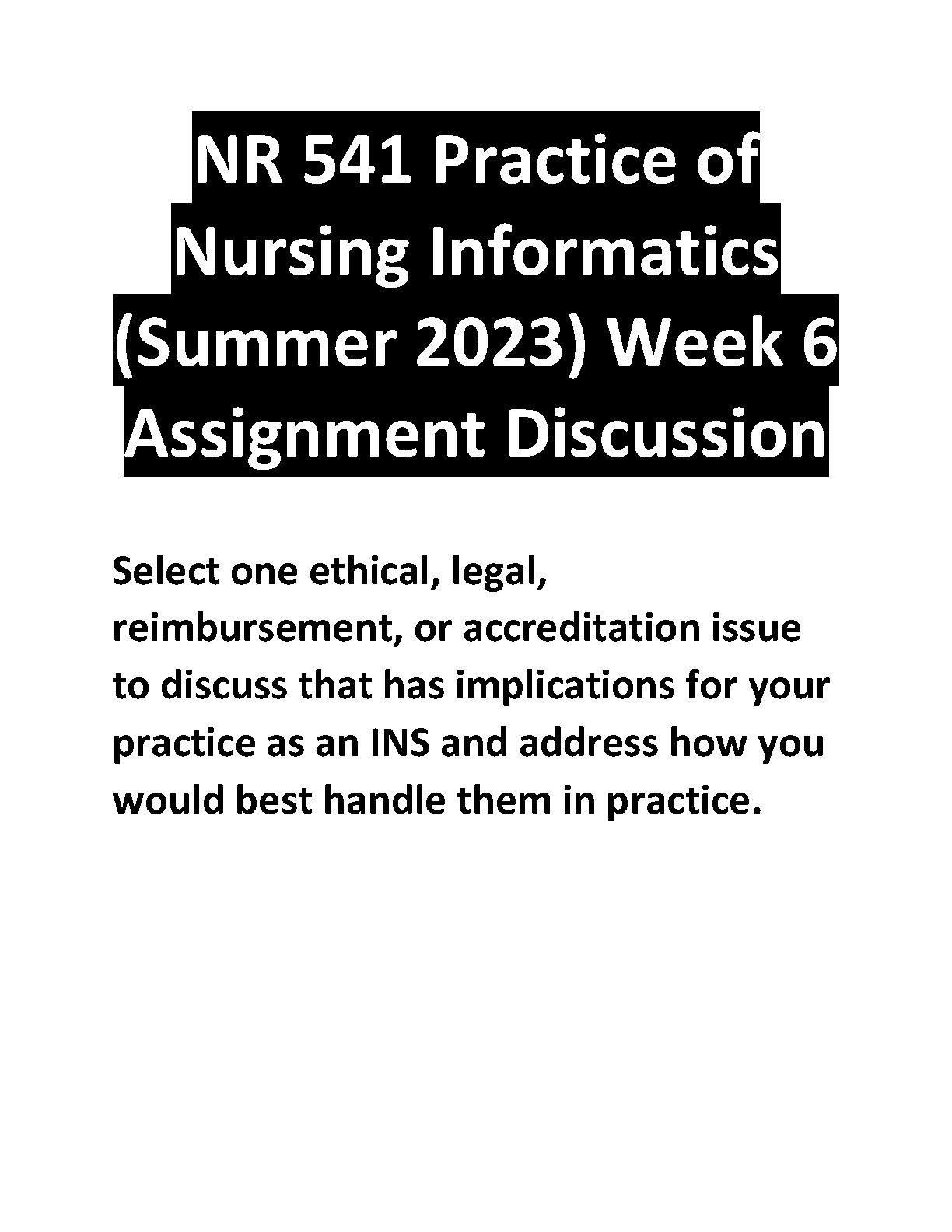 NR 541 Practice of Nursing Informatics (Summer 2023) Week 6 Assignment Discussion - Ace Your Nursing Informatics Exams with this Guide