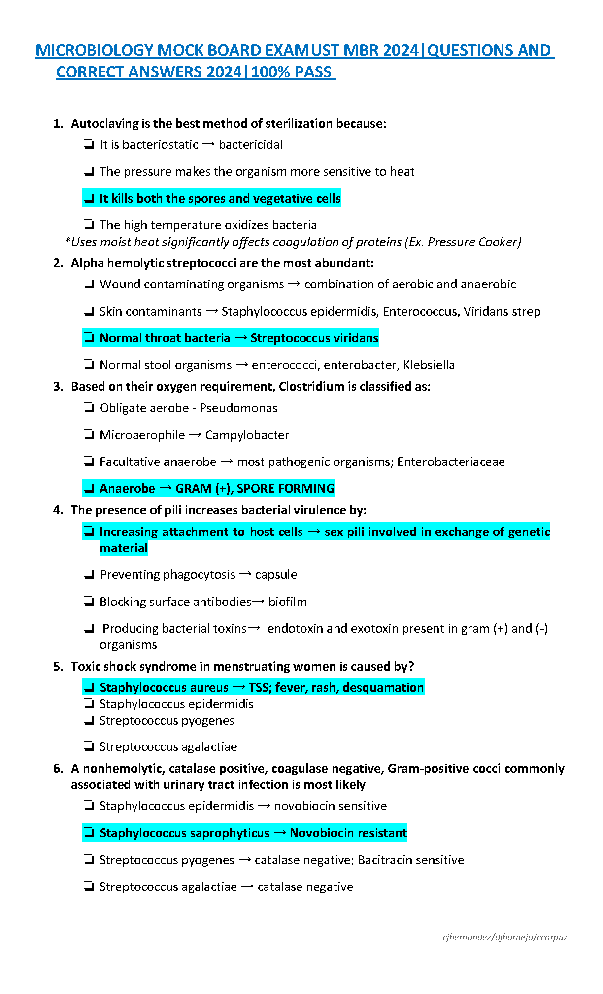 Microbiology Mock Board Examust MBR 2024 Questions and Correct Answers 2024 | 100% Pass