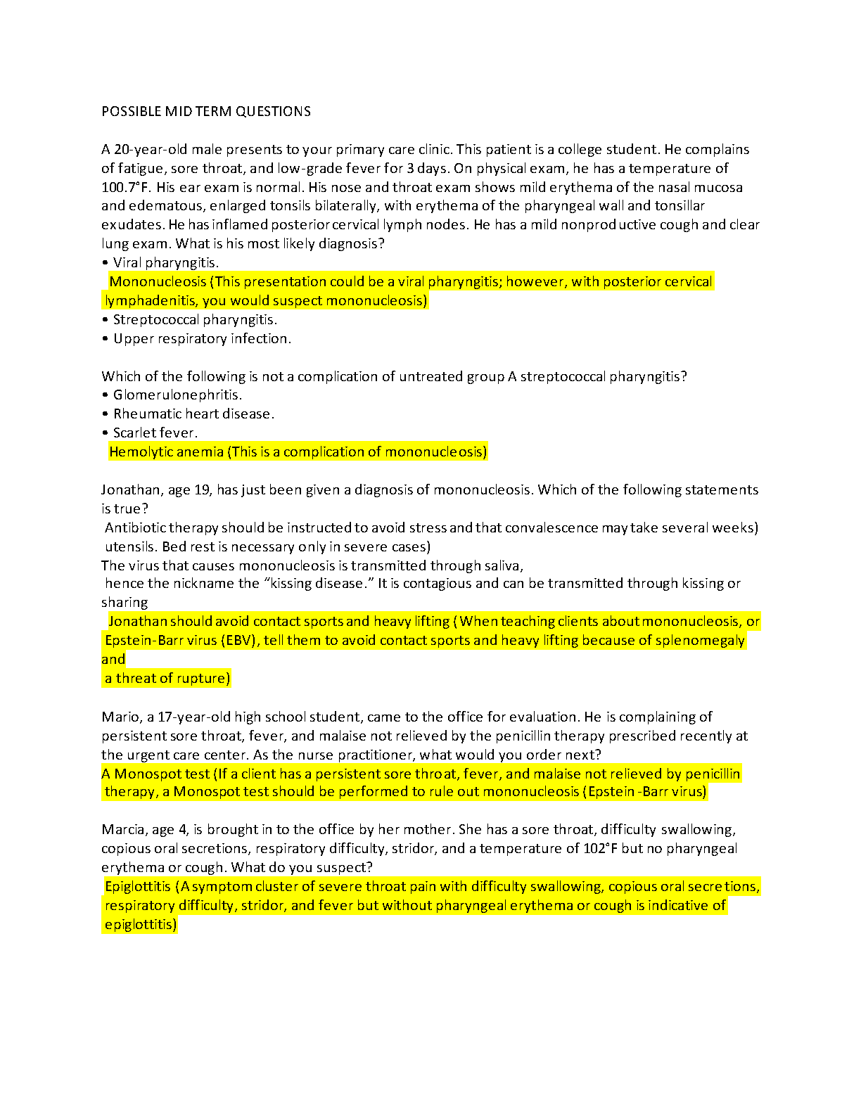 Midterm Questions for Mononucleosis: A Guide to Passing Your Exam on the First Attempt