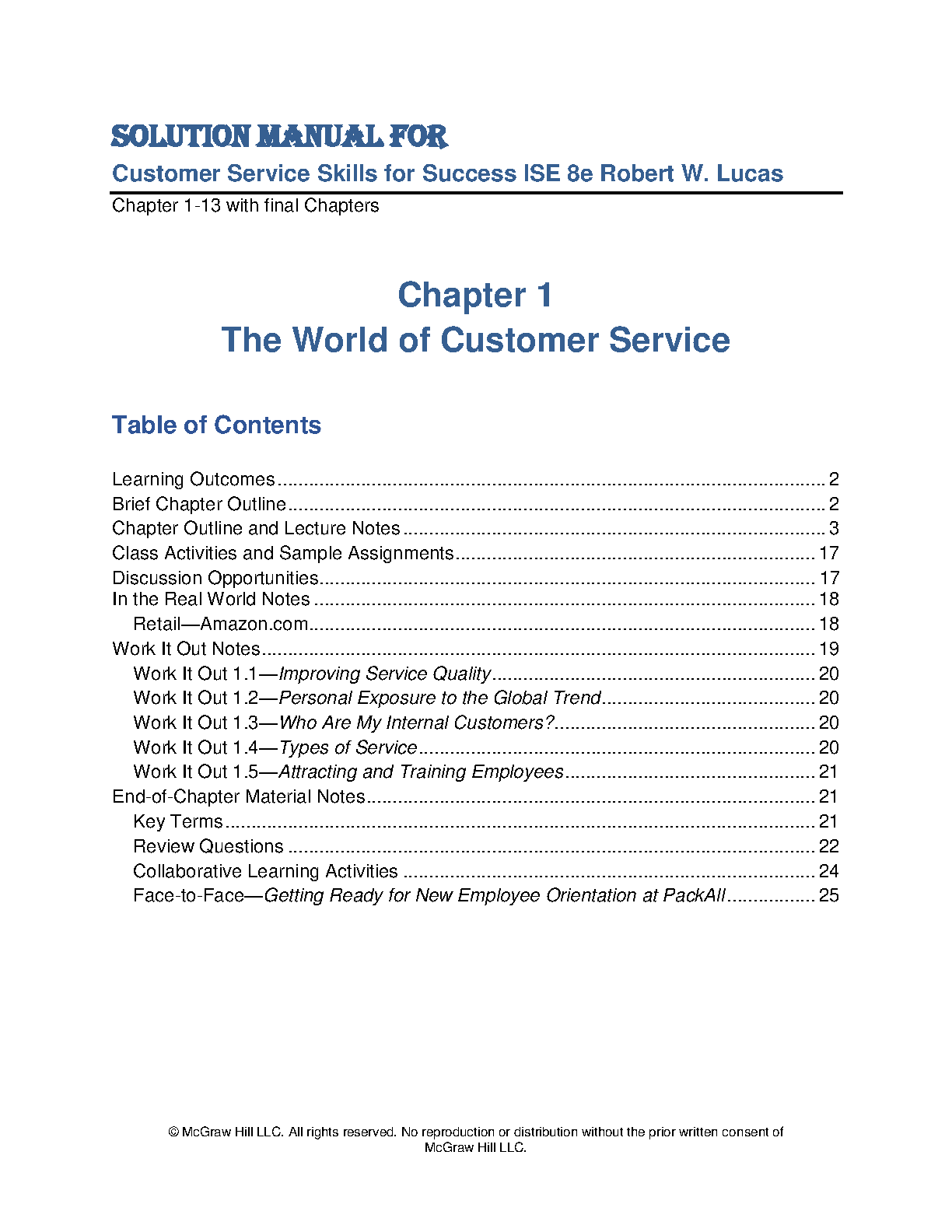 This solution manual for the 8th edition of Customer Service Skills for Success by Robert W. Lucas provides comprehensive answers to all the exercises, case studies, and activities in the textbook. Get access to detailed explanations, insights, and practical strategies to ensure success in your customer service studies. This resource helps you learn and understand the concepts and skills needed for providing excellent customer service.