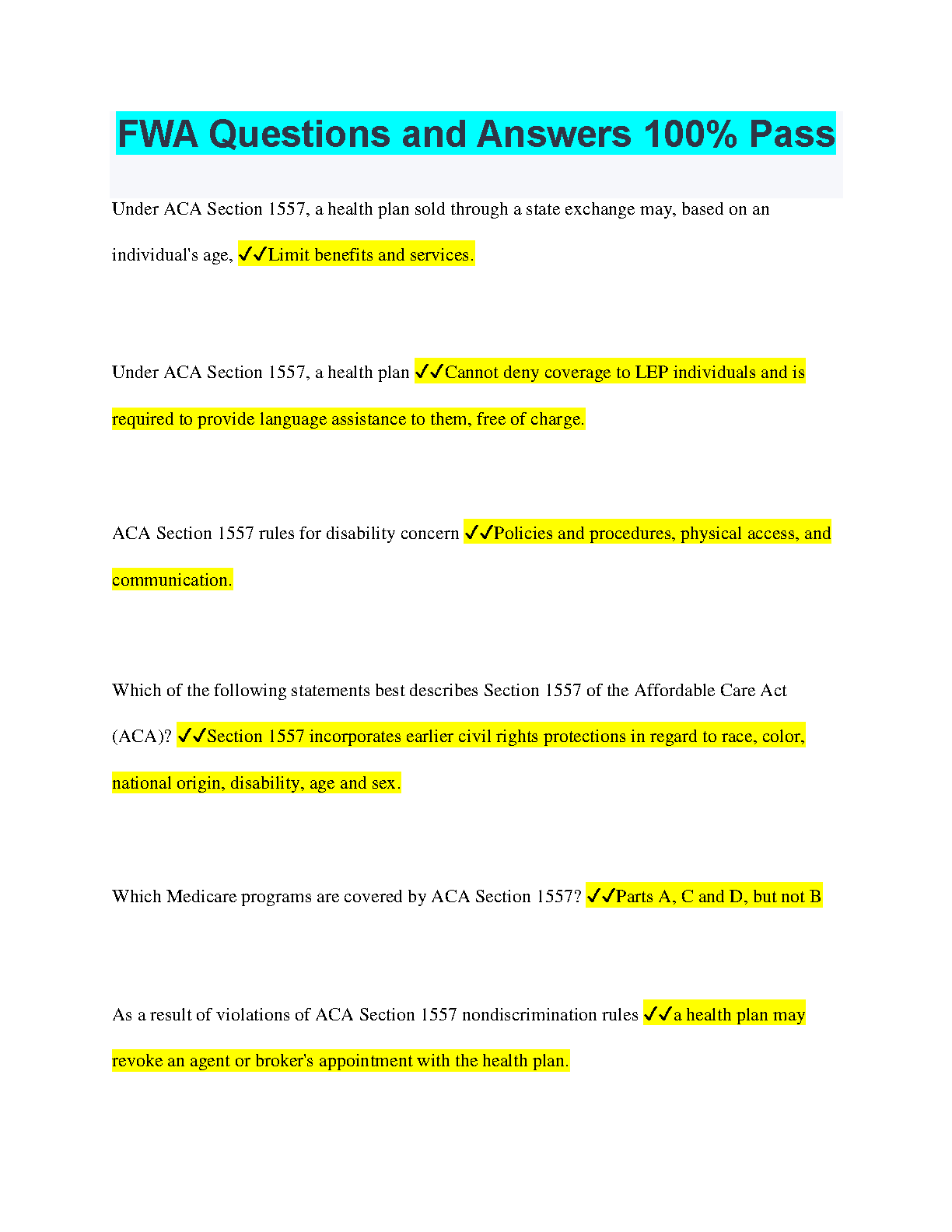 FWA Questions and Answers 100% Pass - 2024/2025 Edition