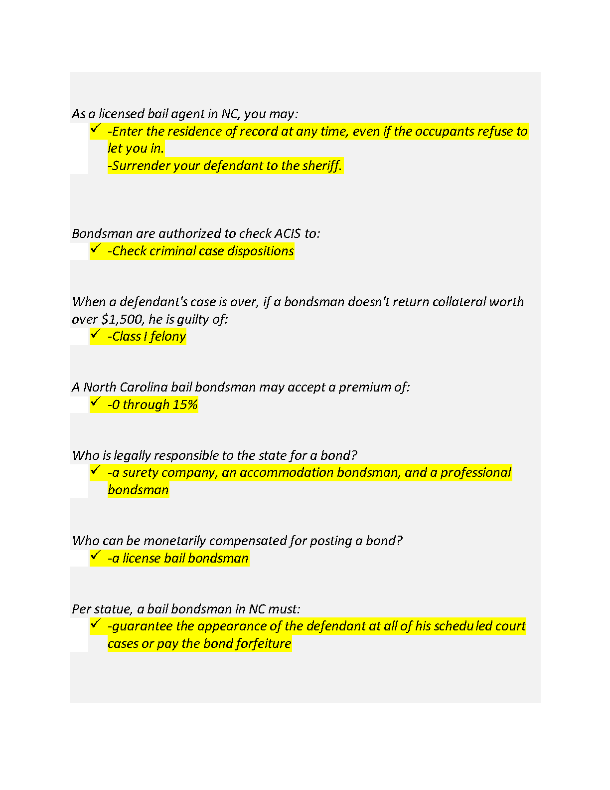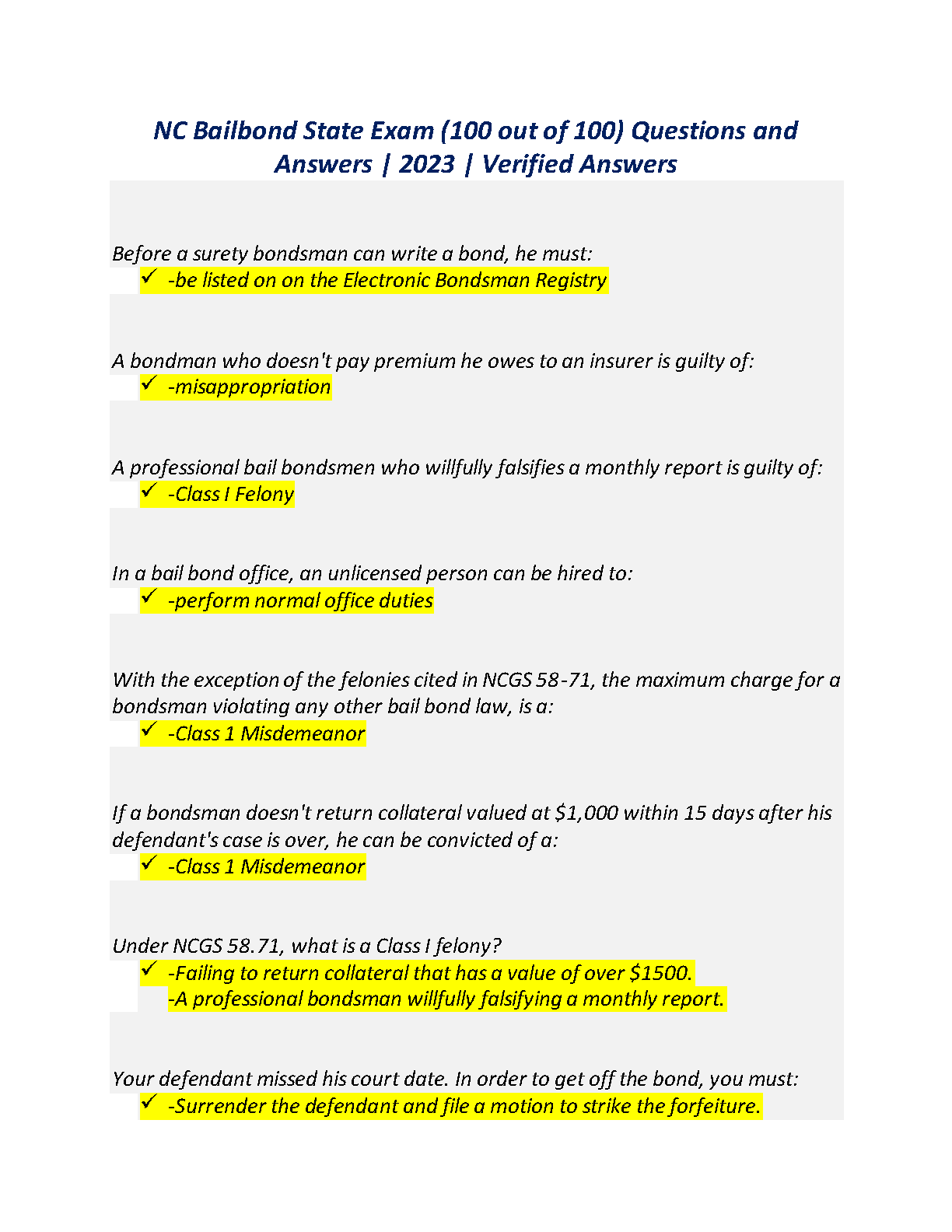 NC Bailbond State Exam (100 out of 100) Questions and Answers | 2023 | Verified Answers