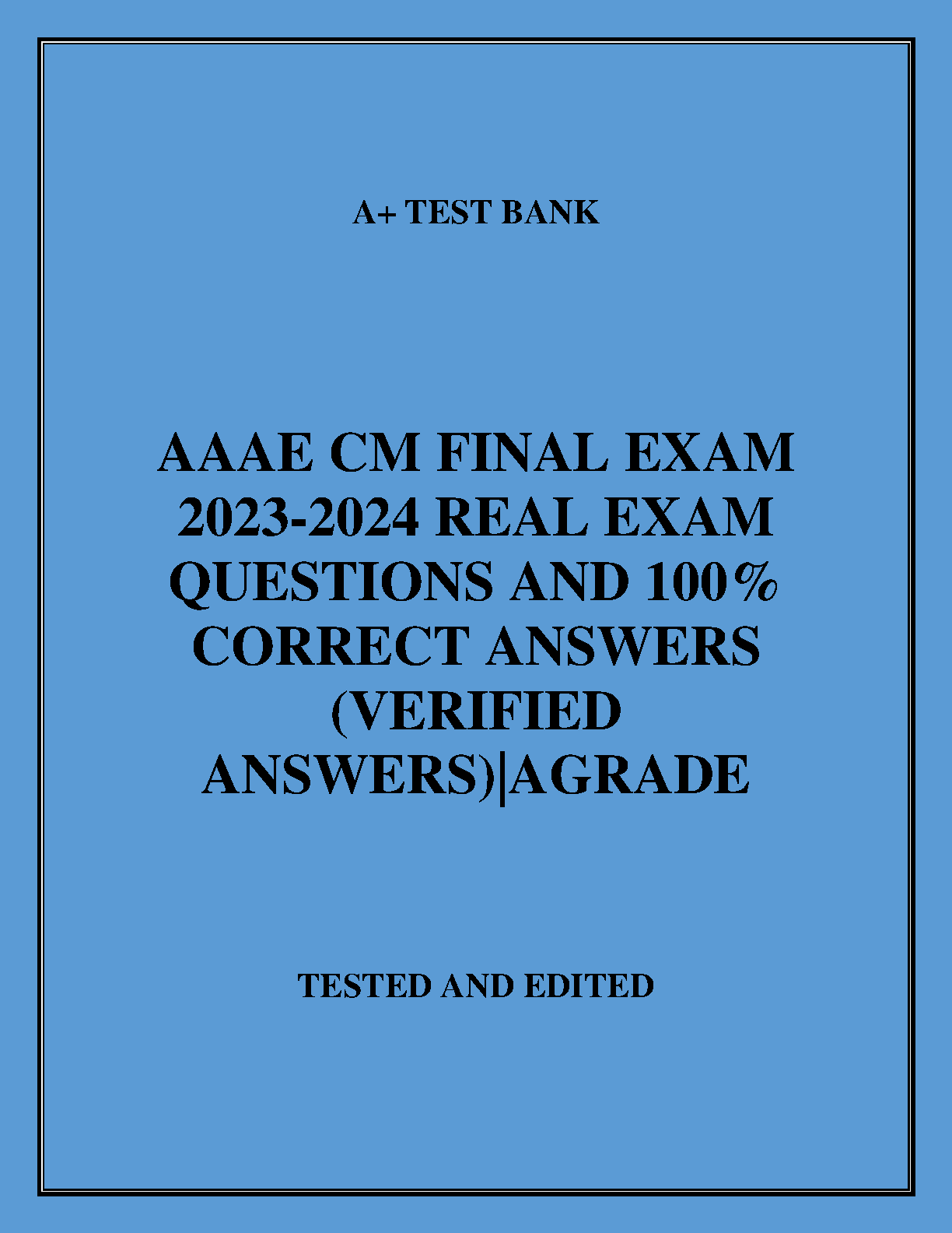 Ace your AAAE CM Final Exam with this comprehensive test bank. Get access to 100% accurate, verified solutions to help you pass with confidence. This study guide is packed with real exam questions and answers, giving you the edge you need for exam success.