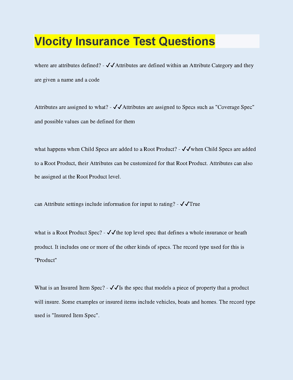 Ace your Vlocity Insurance certification exam on the first attempt with this comprehensive set of practice questions covering key concepts like attributes, specs, and root products.