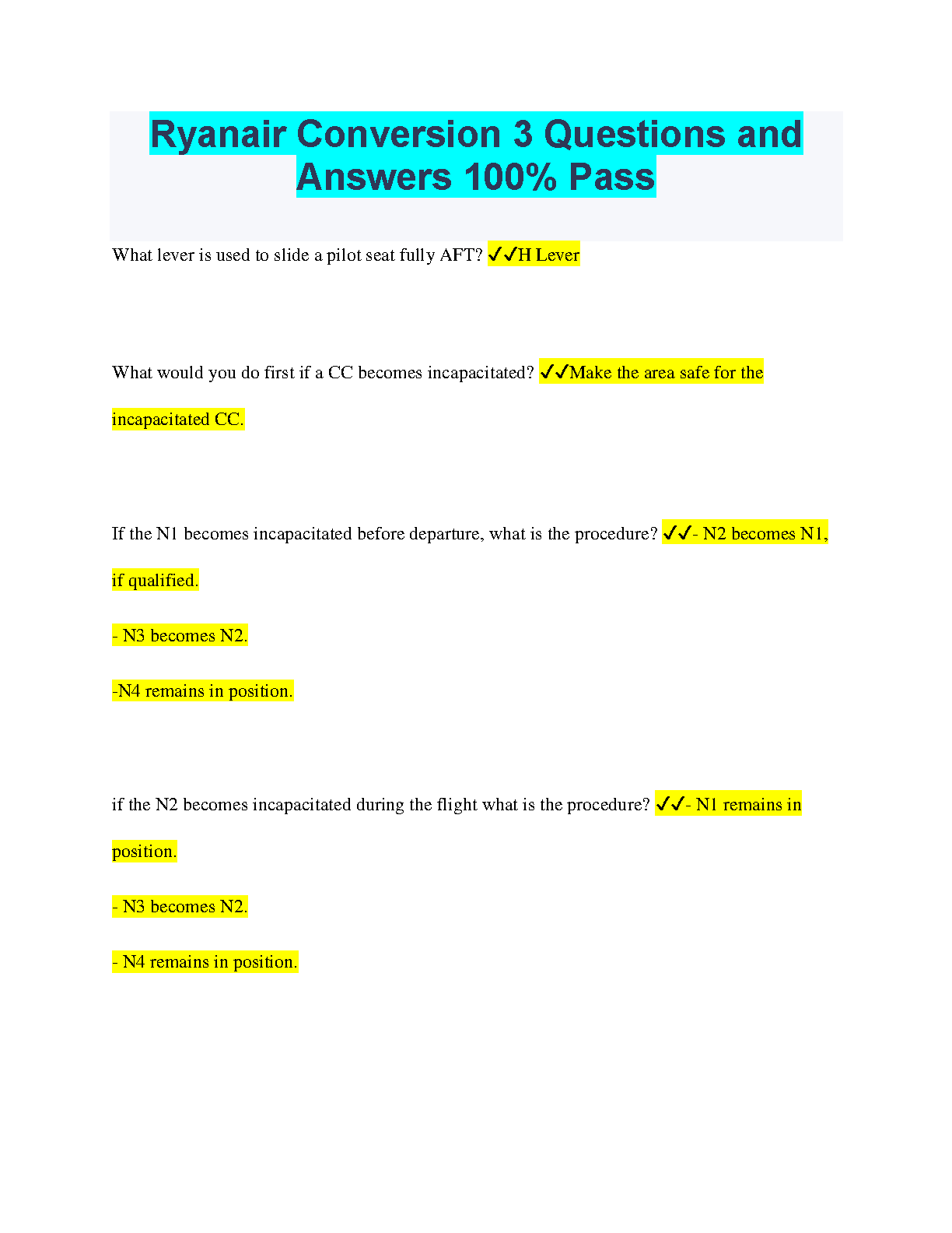Ryanair Conversion 3 Questions and Answers 100% Pass - 2024/2025 Edition