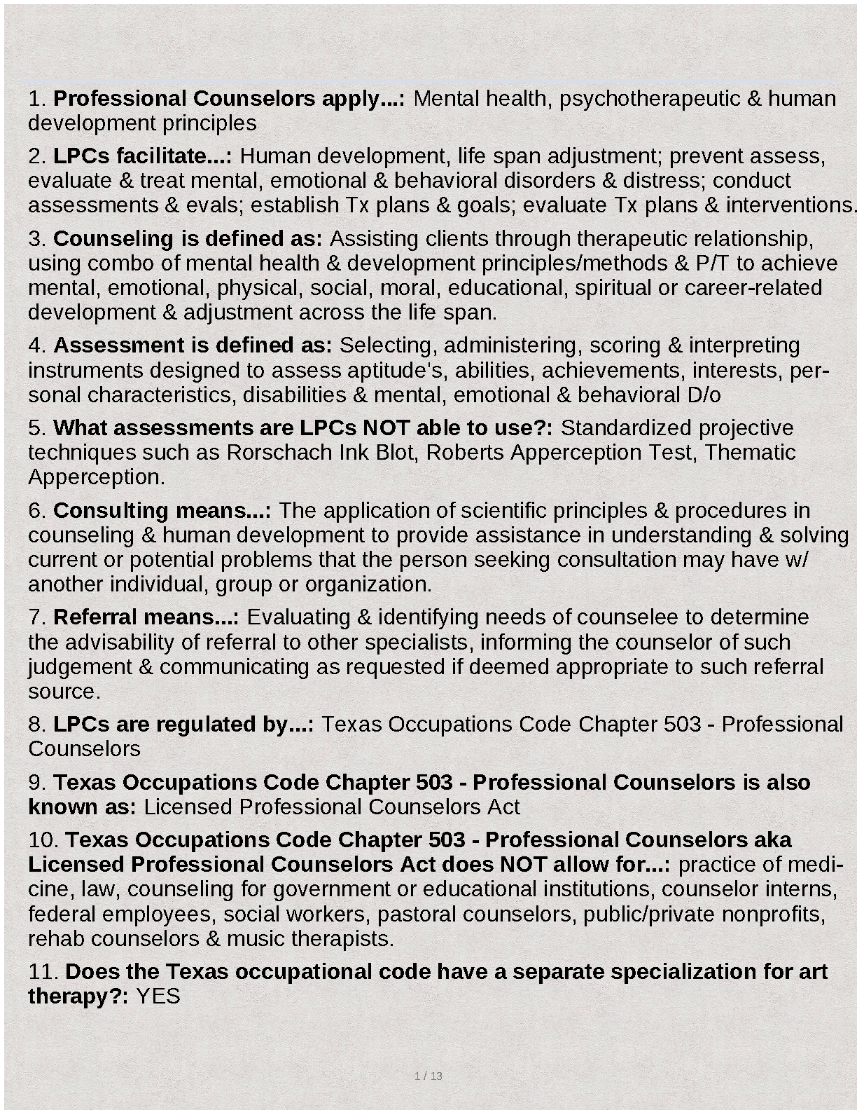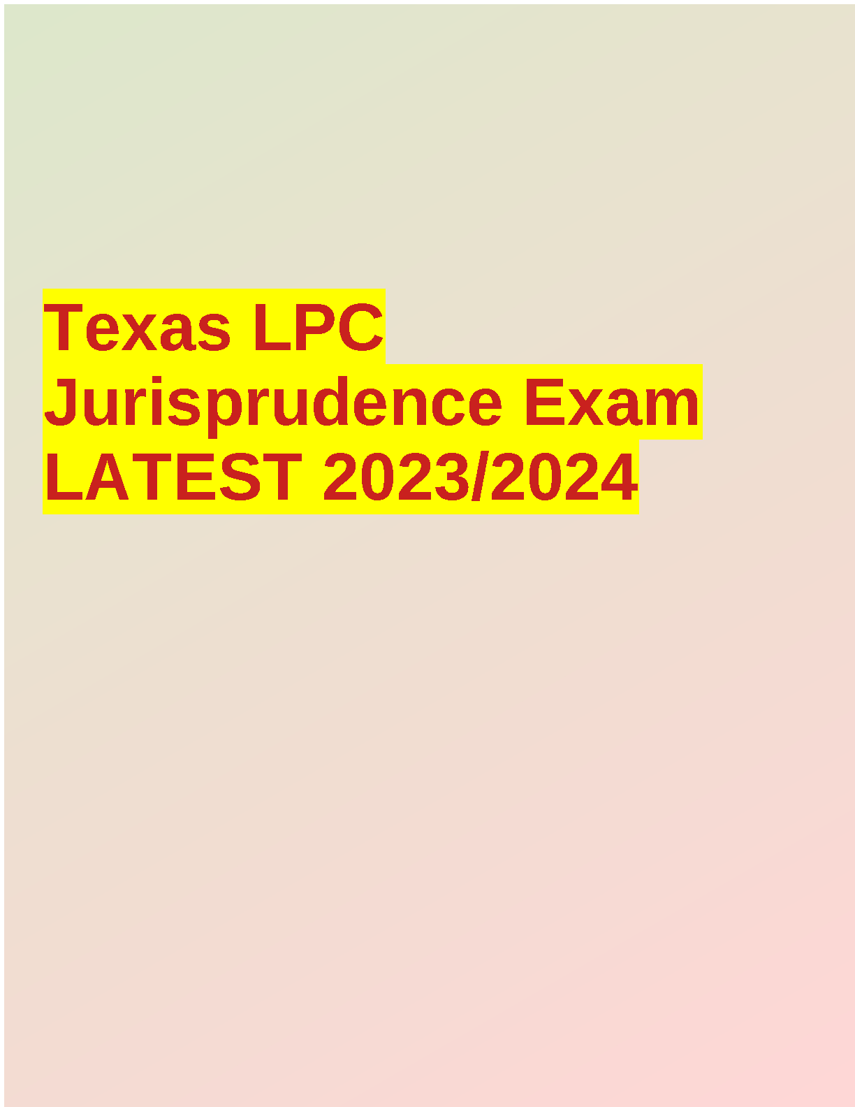 Texas LPC Jurisprudence Exam 2023/2024 - Latest Edition, Updated & Comprehensive