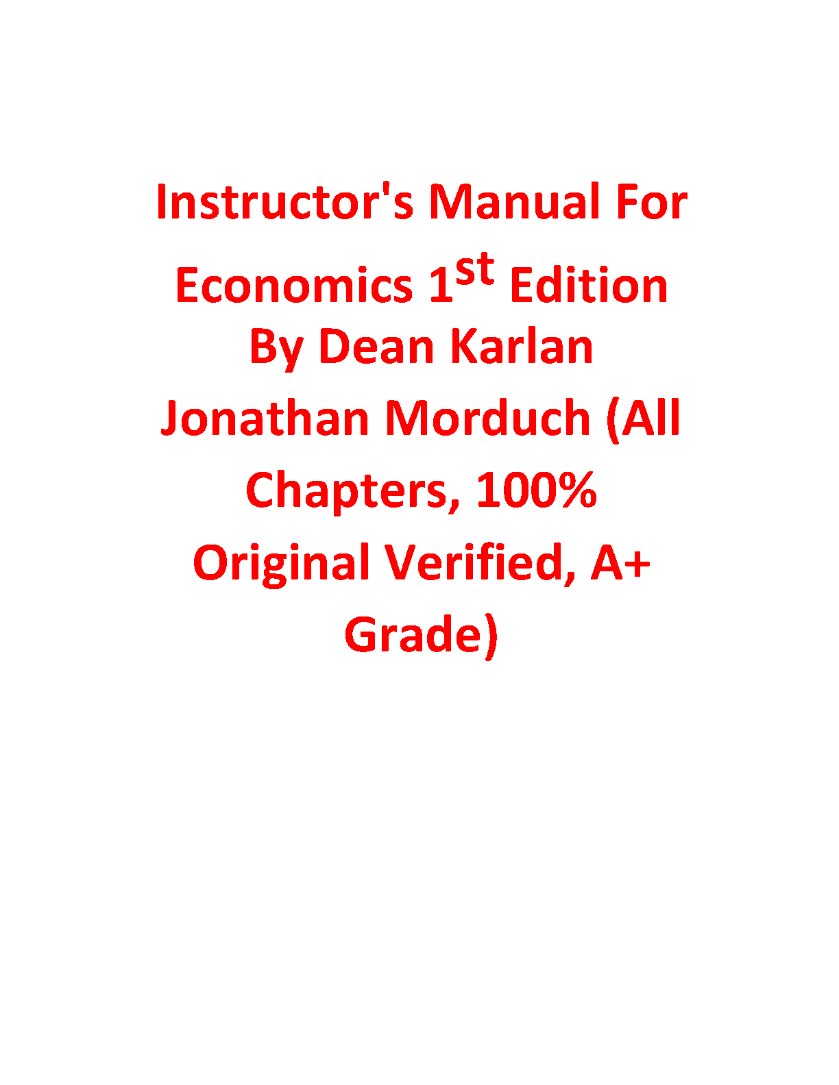 Get ready to ace your Economics class with this comprehensive Instructor's Manual for Economics 1st Edition by Dean Karlan and Jonathan Morduch. This solution manual offers complete coverage of all chapters, ensuring you have the resources needed to understand the concepts and excel in your exams.