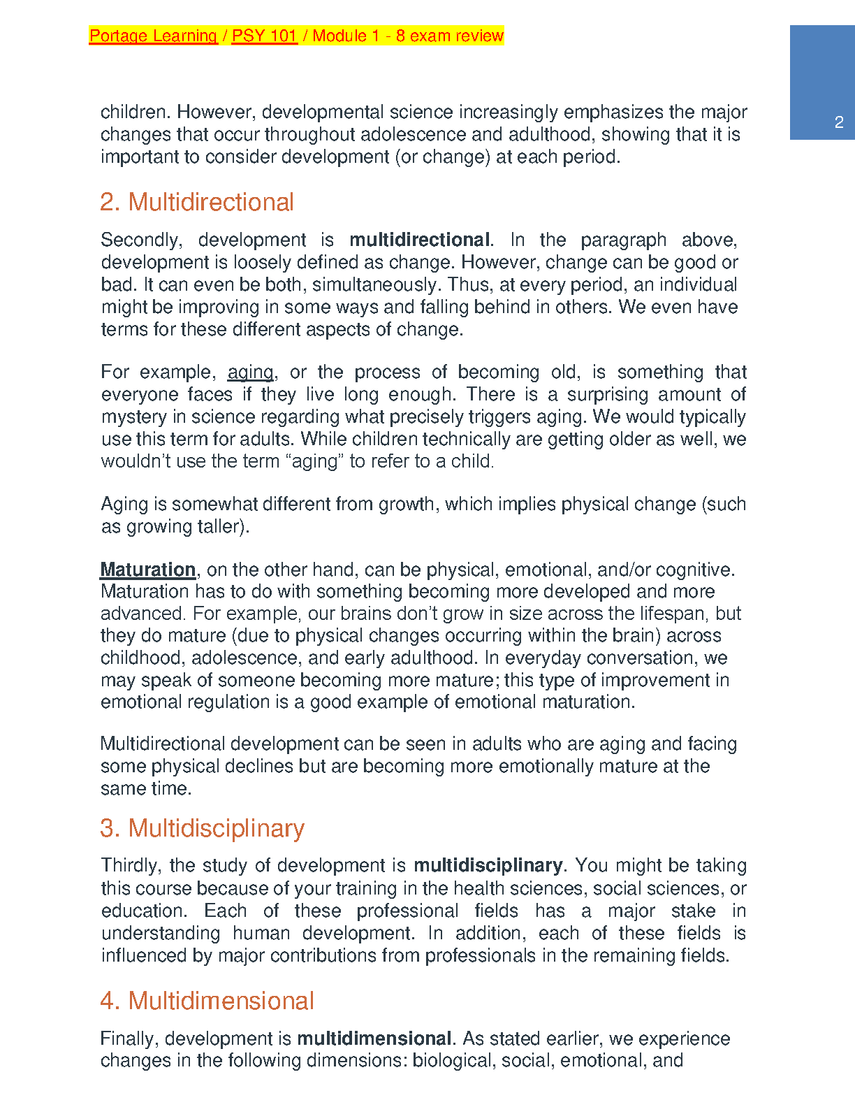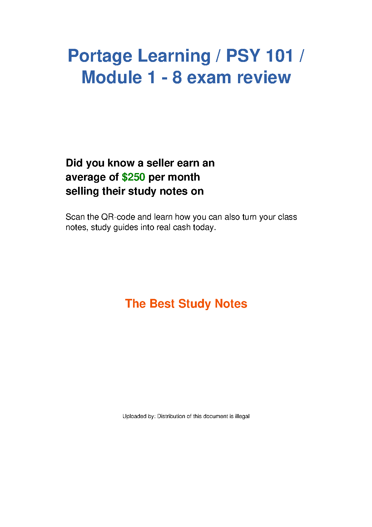 Portage Learning PSY 101 Module 1-8 Exam Review - Get Ready to Ace Your Exams with These Comprehensive Study Notes