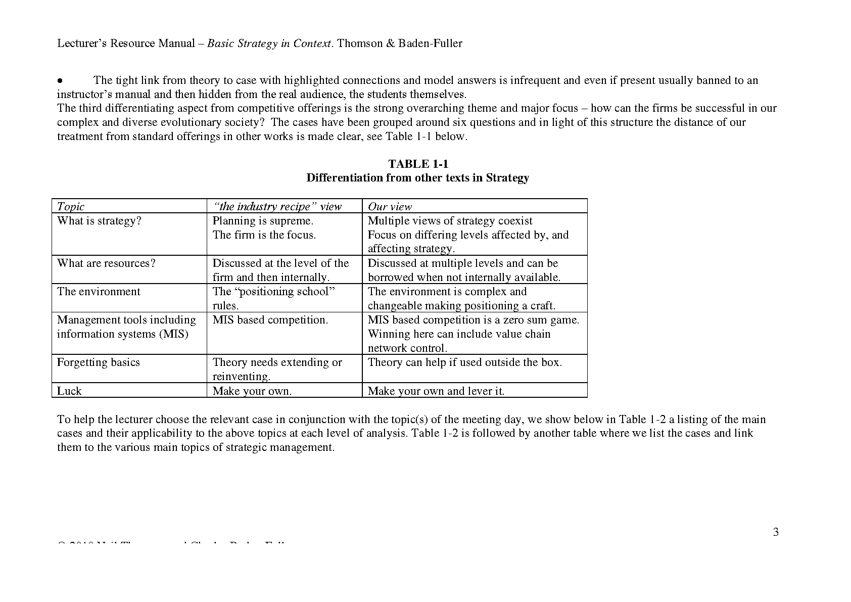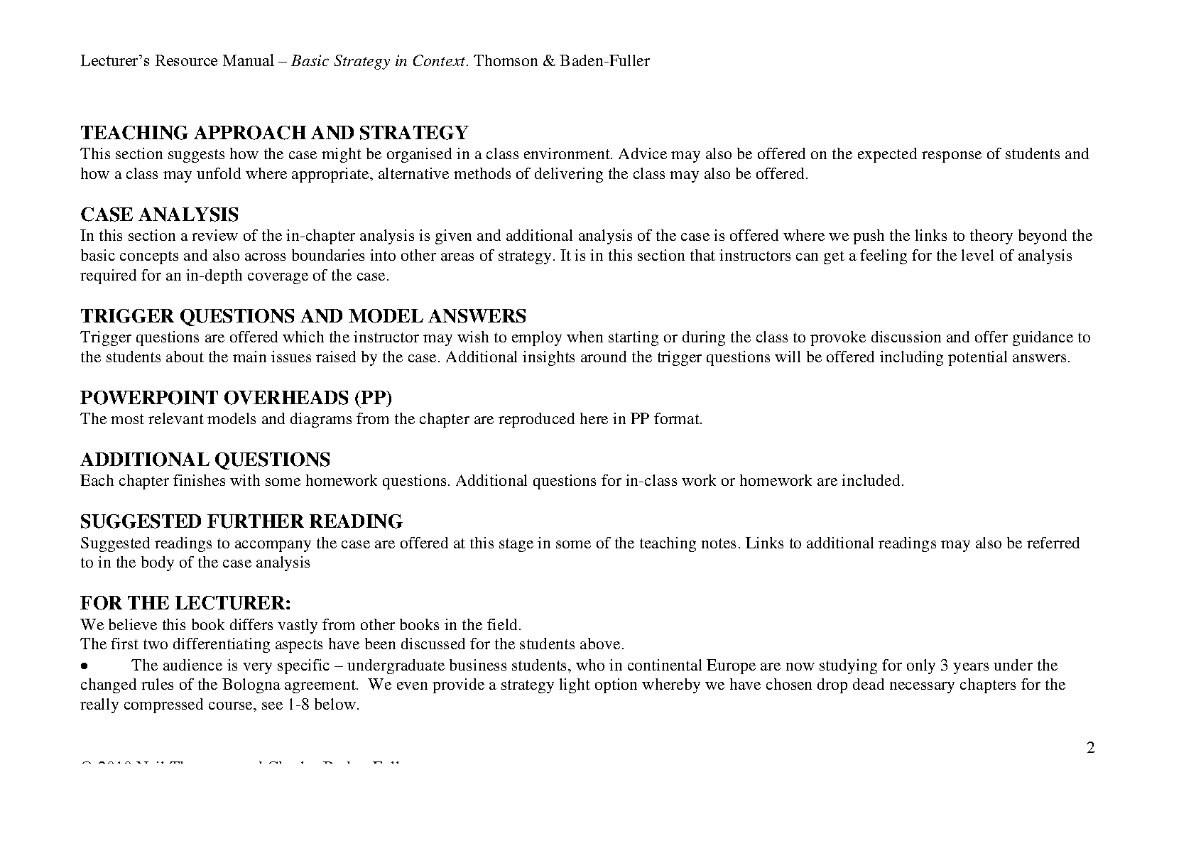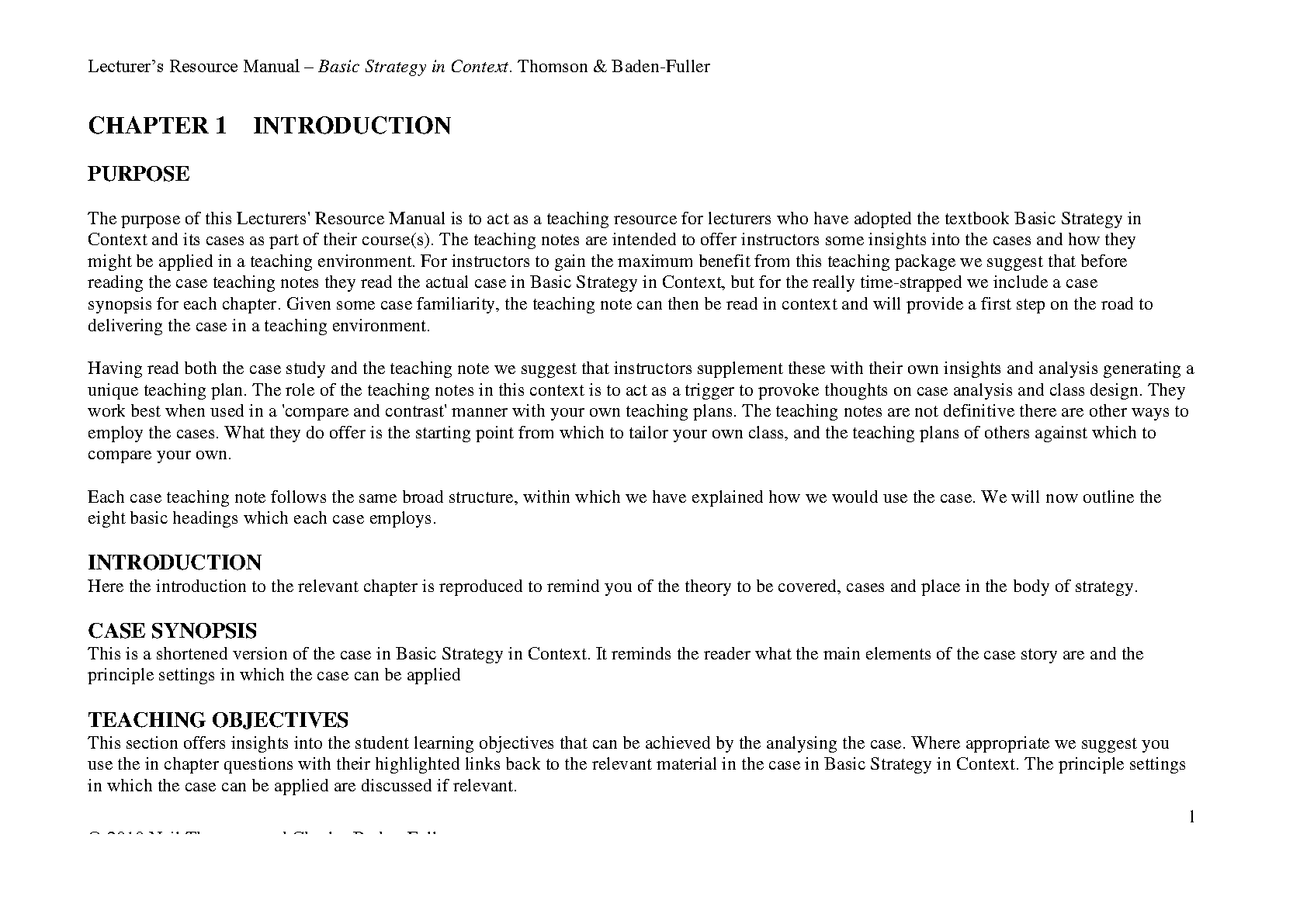 Basic Strategy in Context: Lecturer's Resource Manual, 1st Edition by Thomson & Baden-Fuller