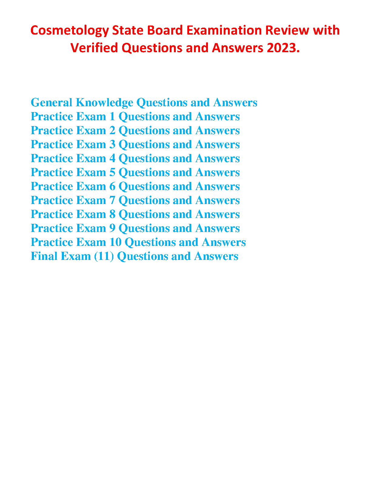 Cosmetology State Board Exam Review with Verified Questions and Answers 2023