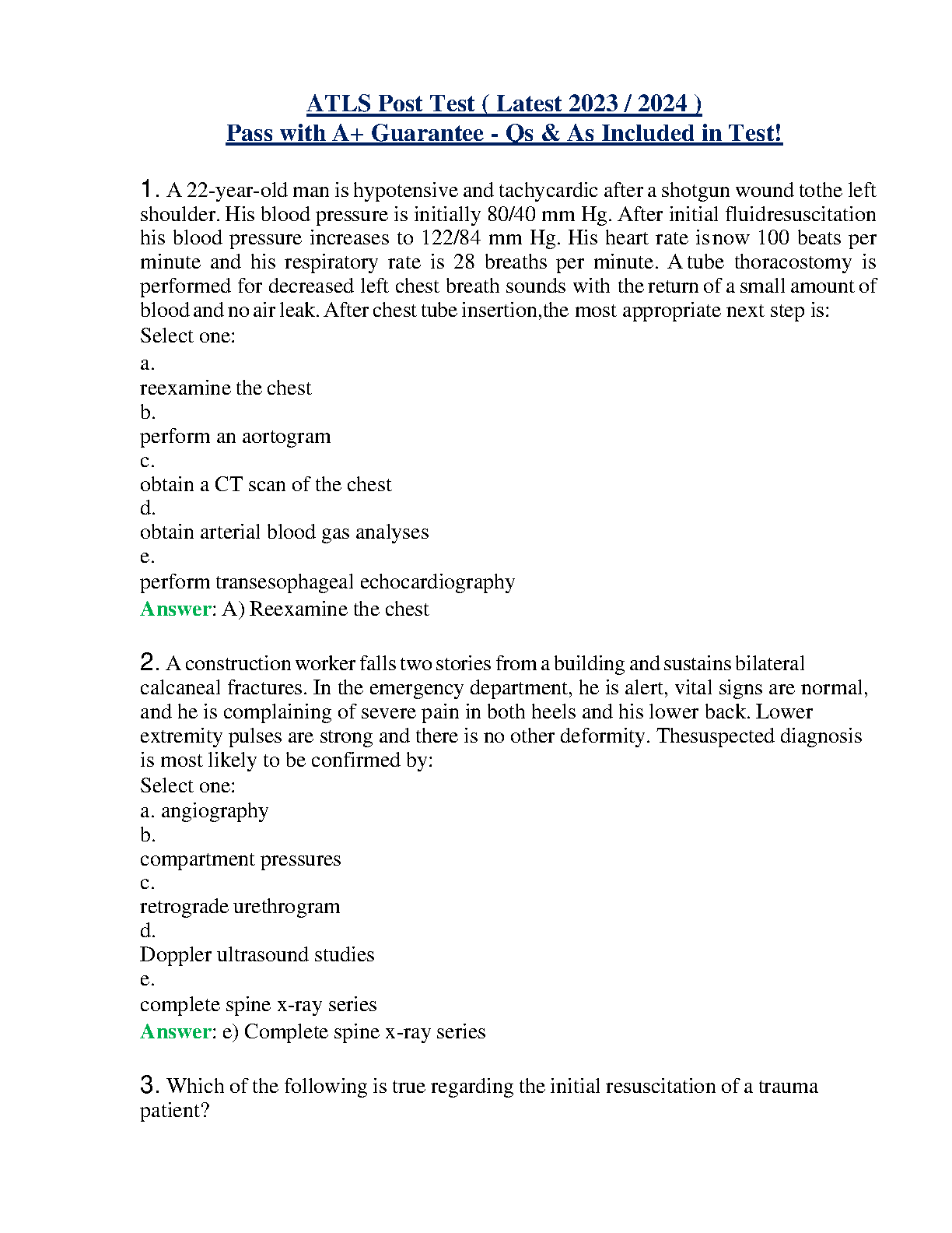 ATLS Post Test (Latest 2023/2024) - Pass with A++ Guarantee - Qs & As Included in Test!
