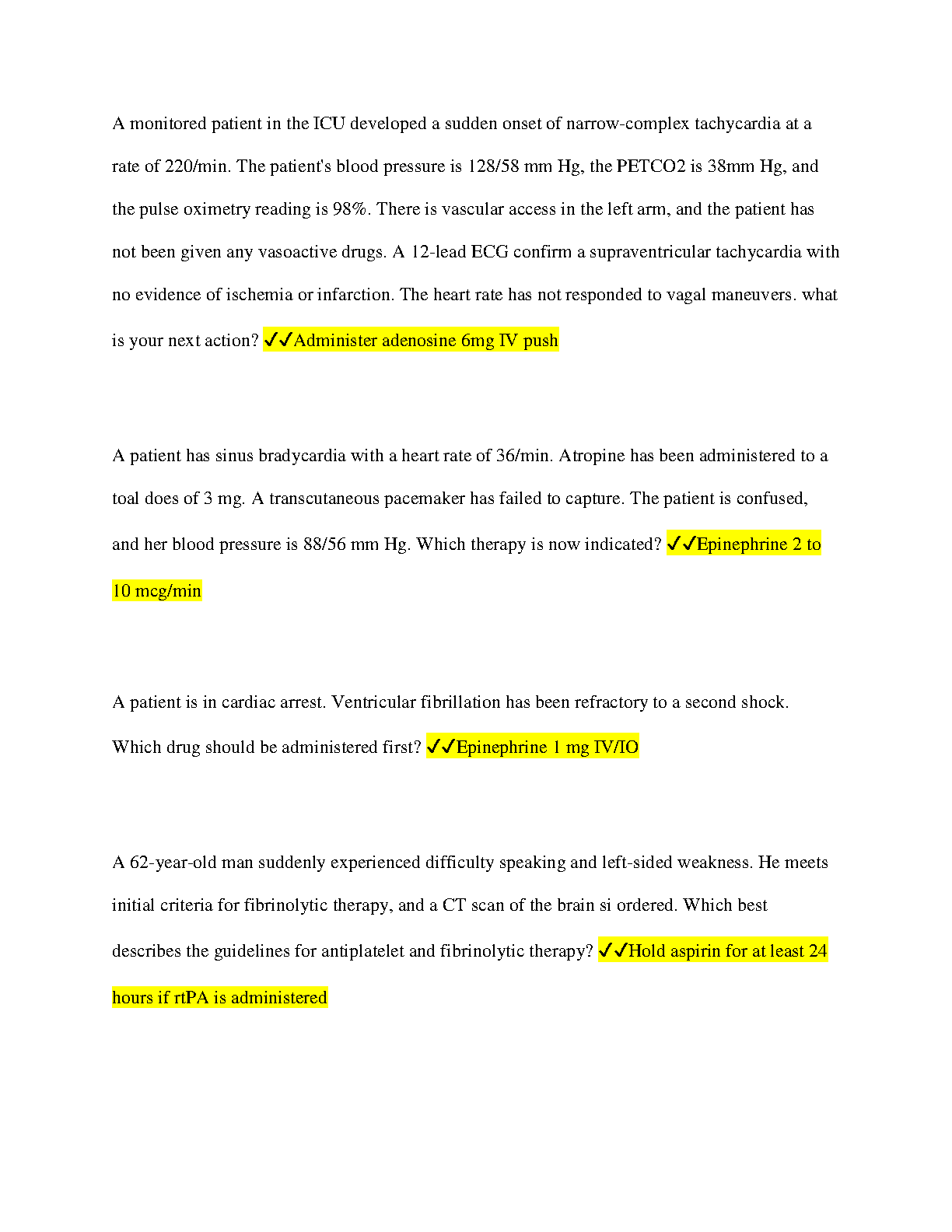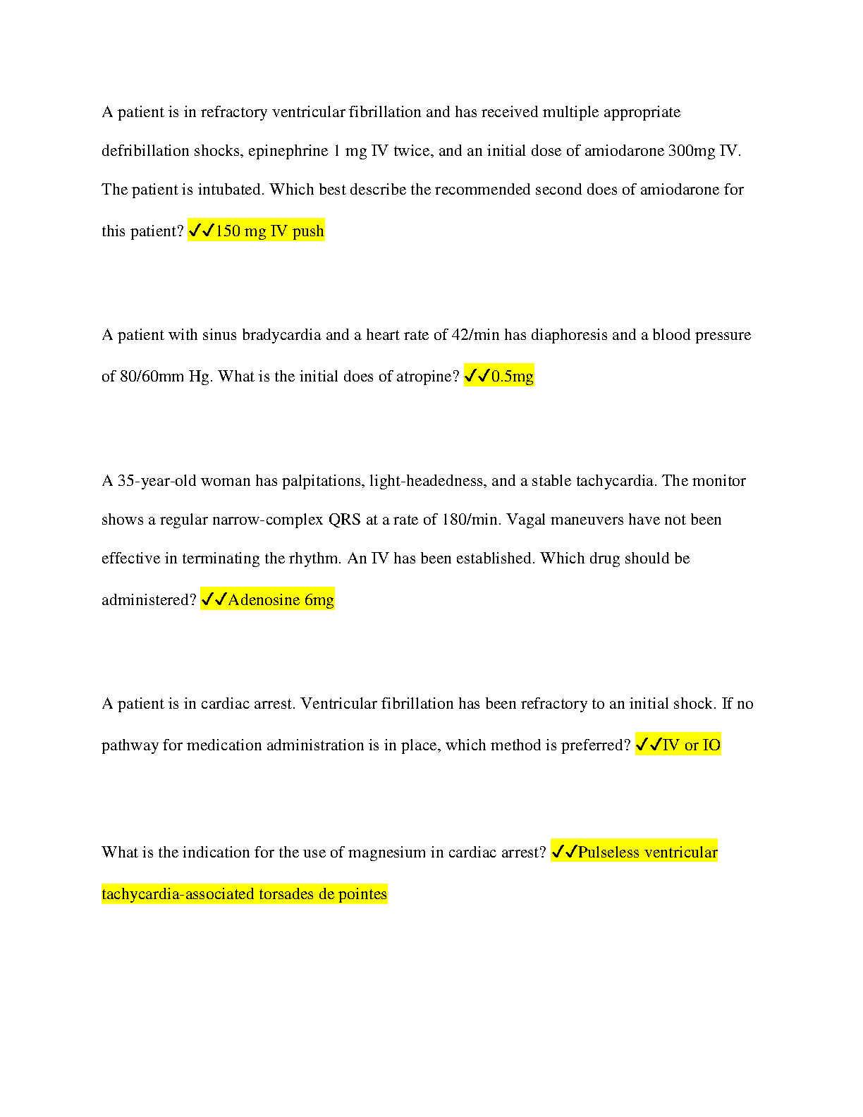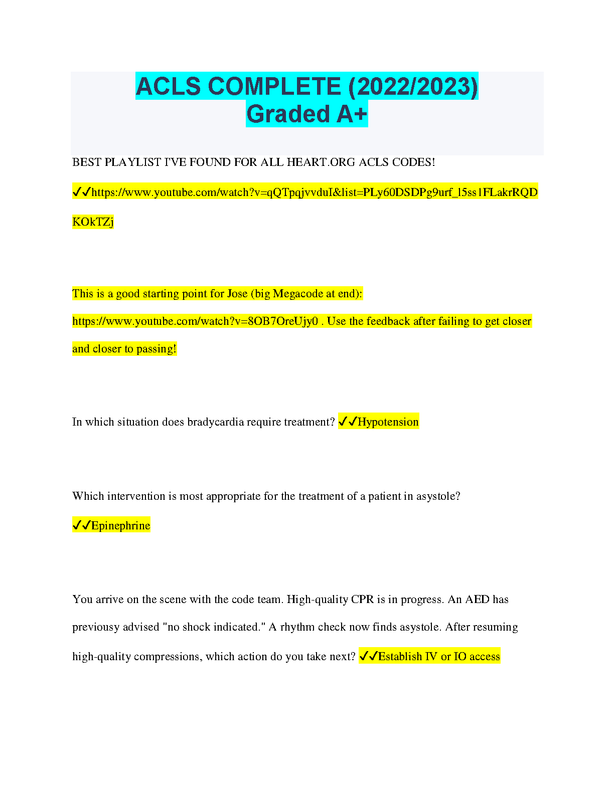 ACLS Complete (2022/2023) Graded A+ for All Heart.org ACLS Codes