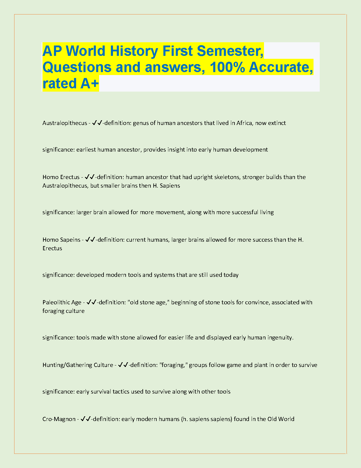 AP World History First Semester, Questions and answers, 100% Accurate, rated A
