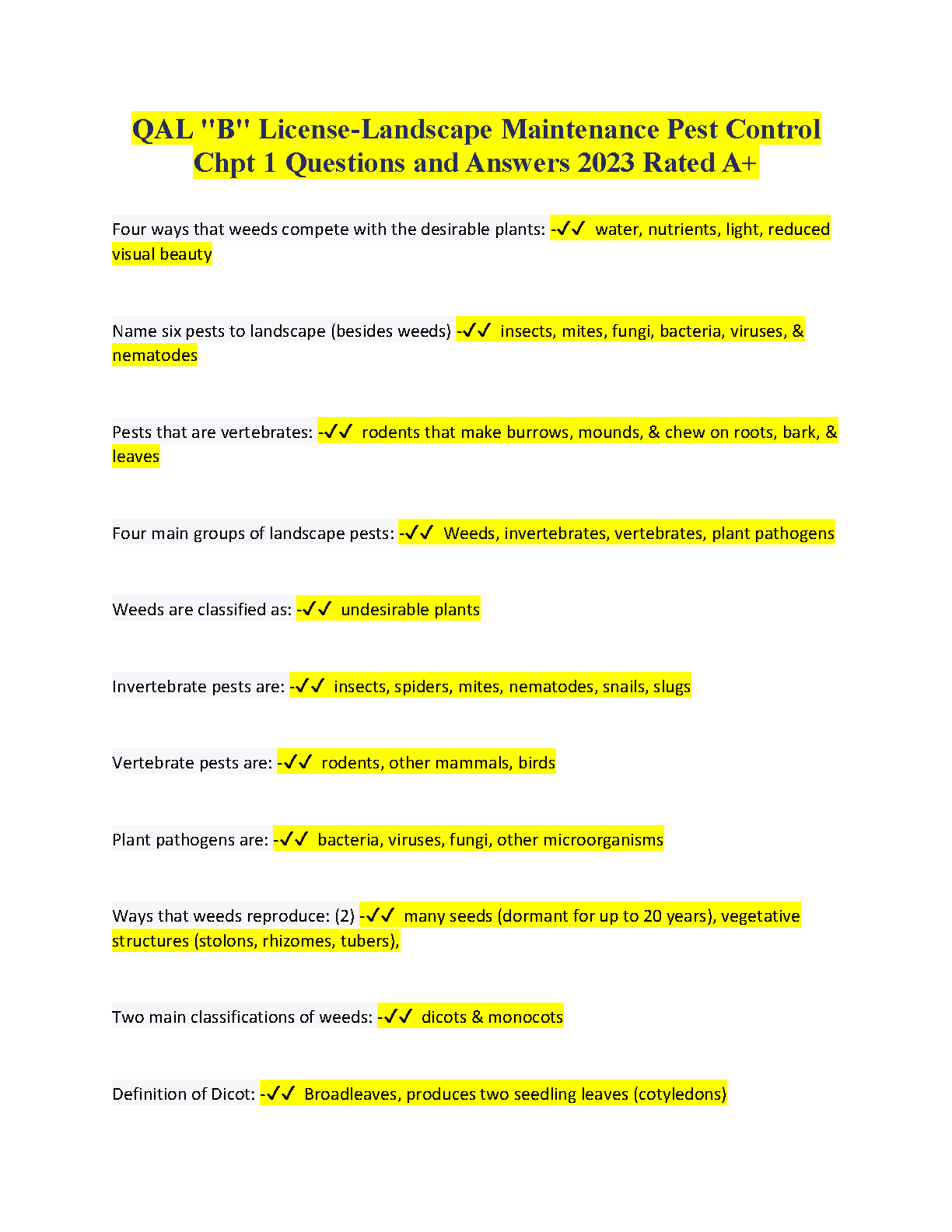 QAL "B" License-Landscape Maintenance Pest Control Chapter 1 Questions and Answers 2023 Rated A+