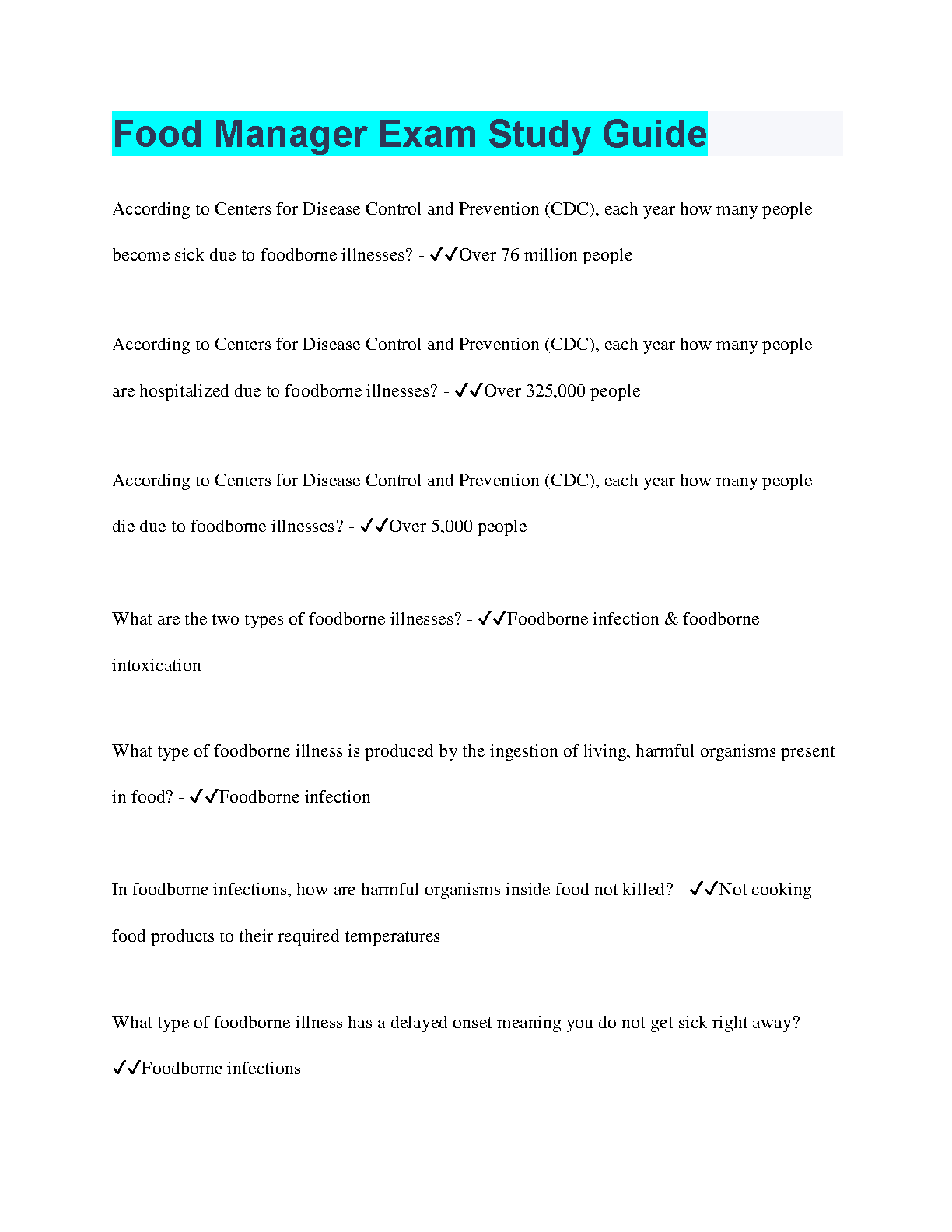This comprehensive study guide is designed to help you master the concepts and skills you need to pass your Food Manager exam. The guide covers key topics such as foodborne illness, food safety regulations, and sanitation procedures.