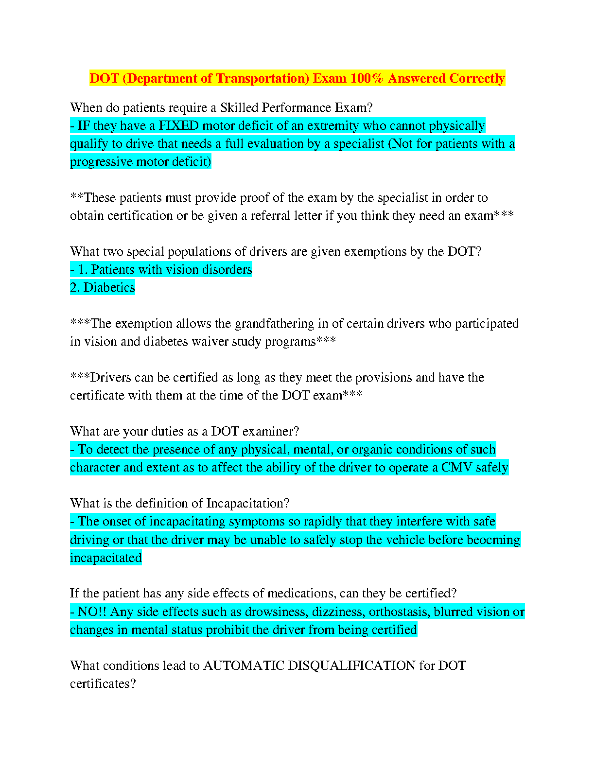 DOT (Department of Transportation) Exam 100% Answered Correctly: A Complete Study Guide for Success