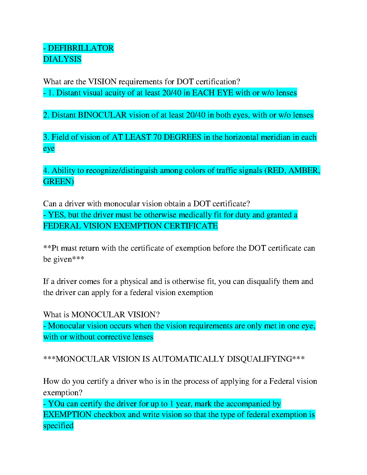 This comprehensive study guide covers all aspects of the DOT Exam, ensuring you pass on your first attempt. Learn about the different types of exemptions, how to detect physical and mental conditions that affect driving, and the definition of incapacitation.