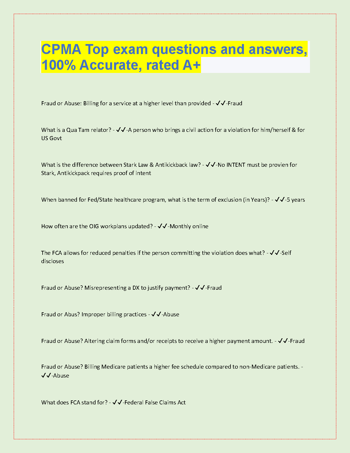 CPMA Exam Questions and Answers 2024/2025 Edition: Ace Your Exam on the First Attempt