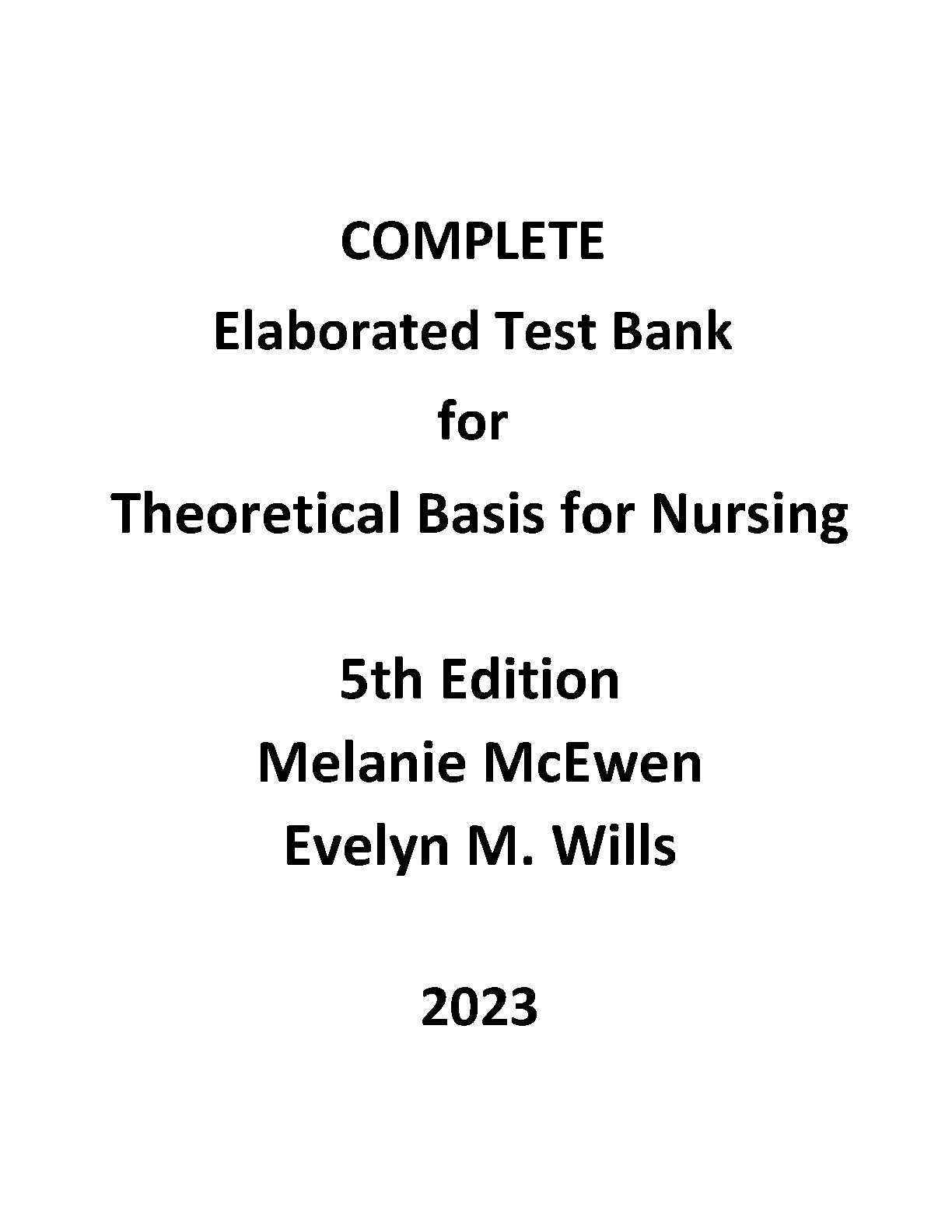 Ace your nursing exams with this comprehensive Test Bank for Theoretical Basis for Nursing, 5th Edition by Melanie McEwen and Evelyn M. Wills. This valuable resource offers a wealth of practice questions designed to help you master the key concepts and principles of nursing theory.