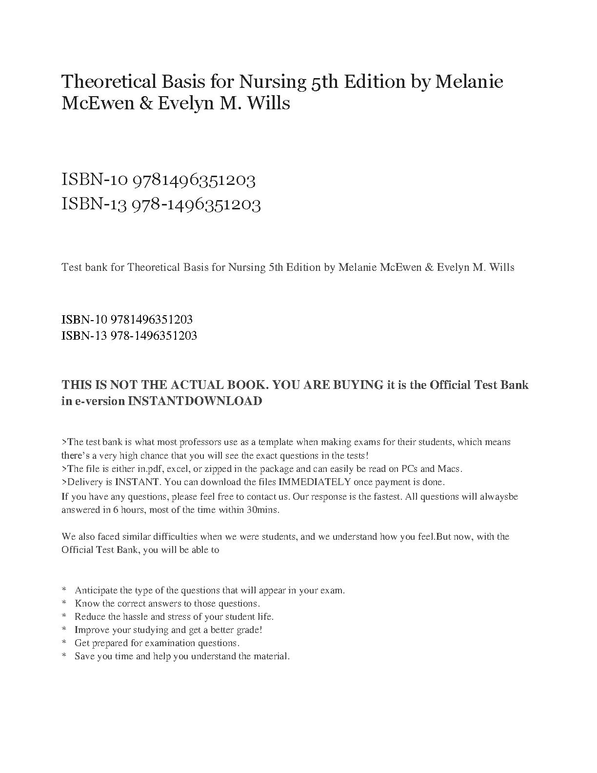 Theoretical Basis for Nursing 5th Edition Test Bank by Melanie McEwen and Evelyn M. Wills