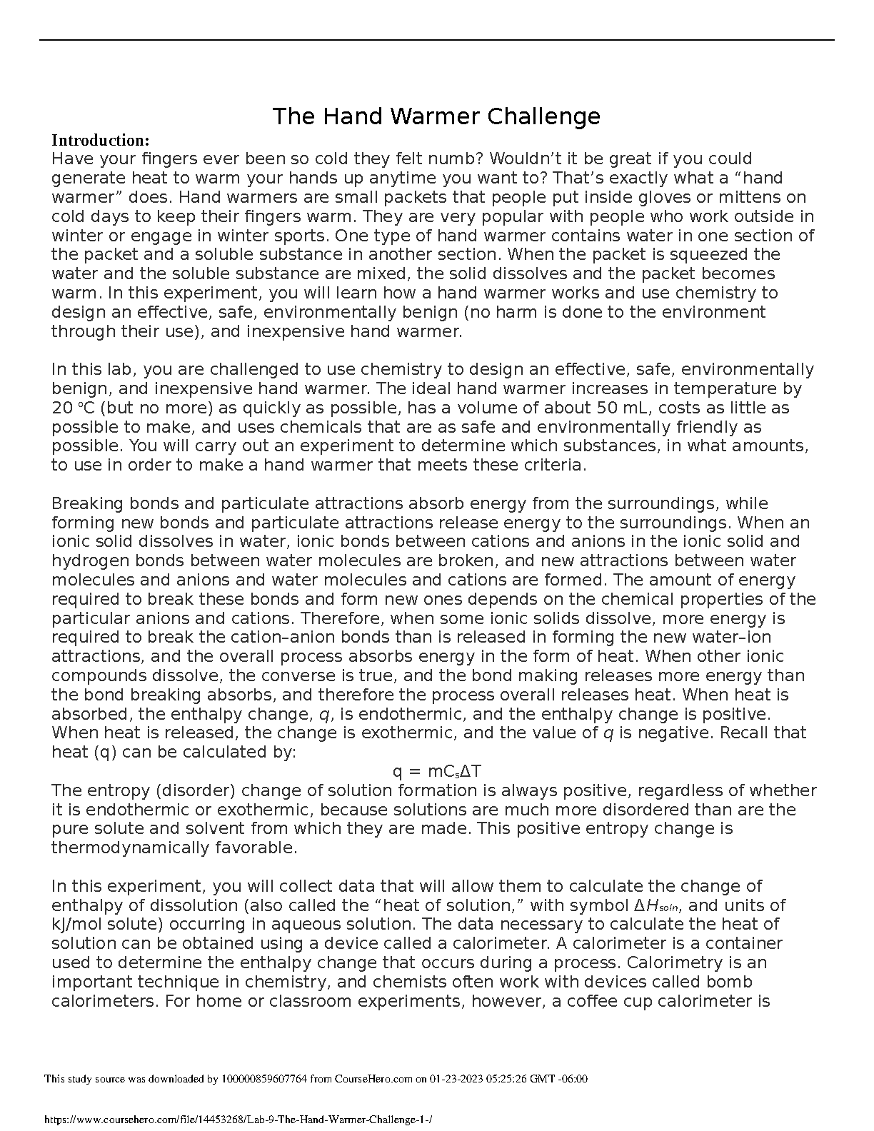The Hand Warmer Challenge: A Guide to Designing an Effective, Safe, and Inexpensive Hand Warmer by (Author names to be filled in from online sources)