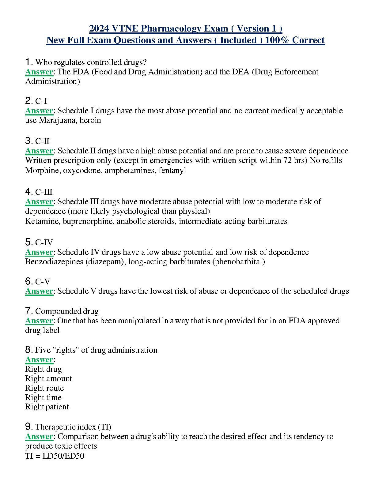2024 VTNE Pharmacology Exam (Version 1) - New Full Exam Questions and Answers (Included) 100% Correct