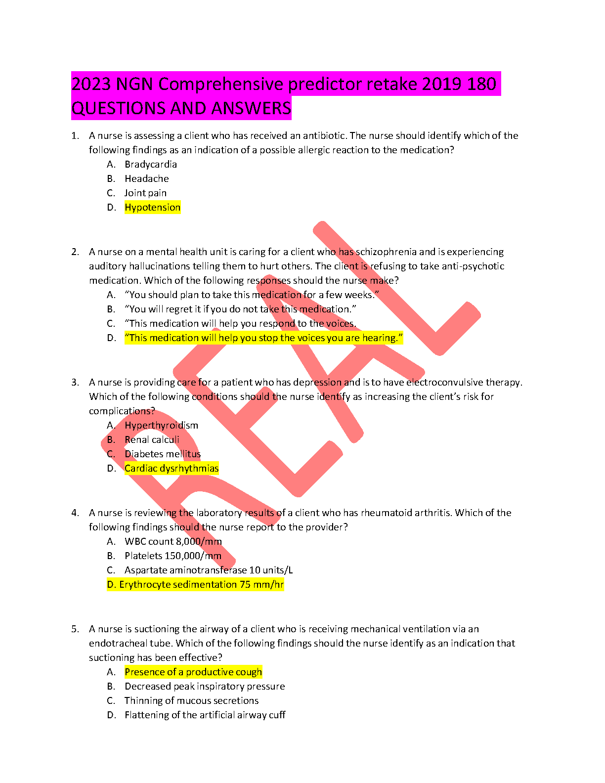 2023 NGN Comprehensive Predictor Retake 2019 180 Questions and Answers by NGN
