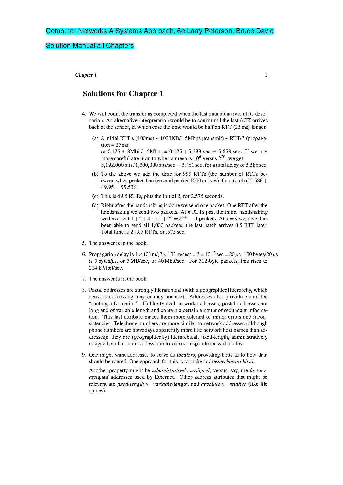 Computer Networks A Systems Approach, 6e by Larry Peterson, Bruce Davie - Solution Manual All Chapters