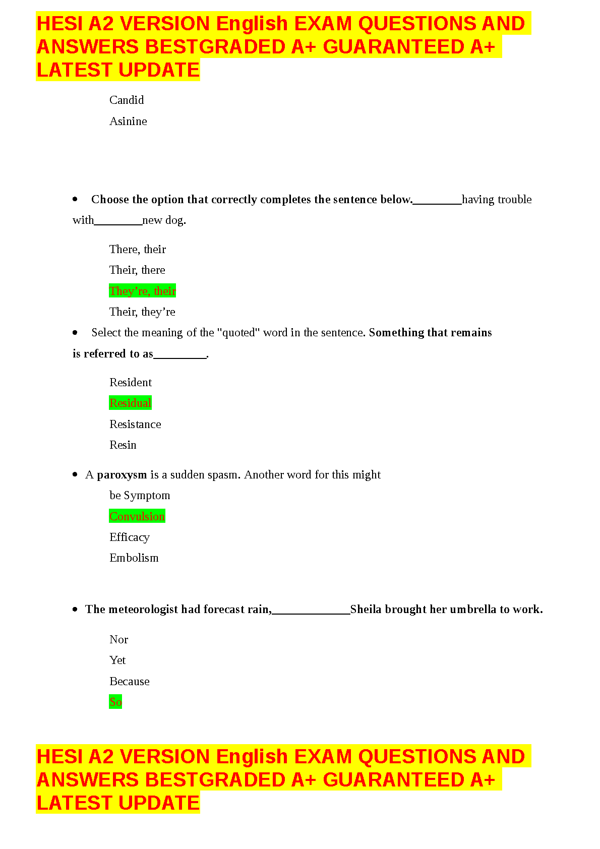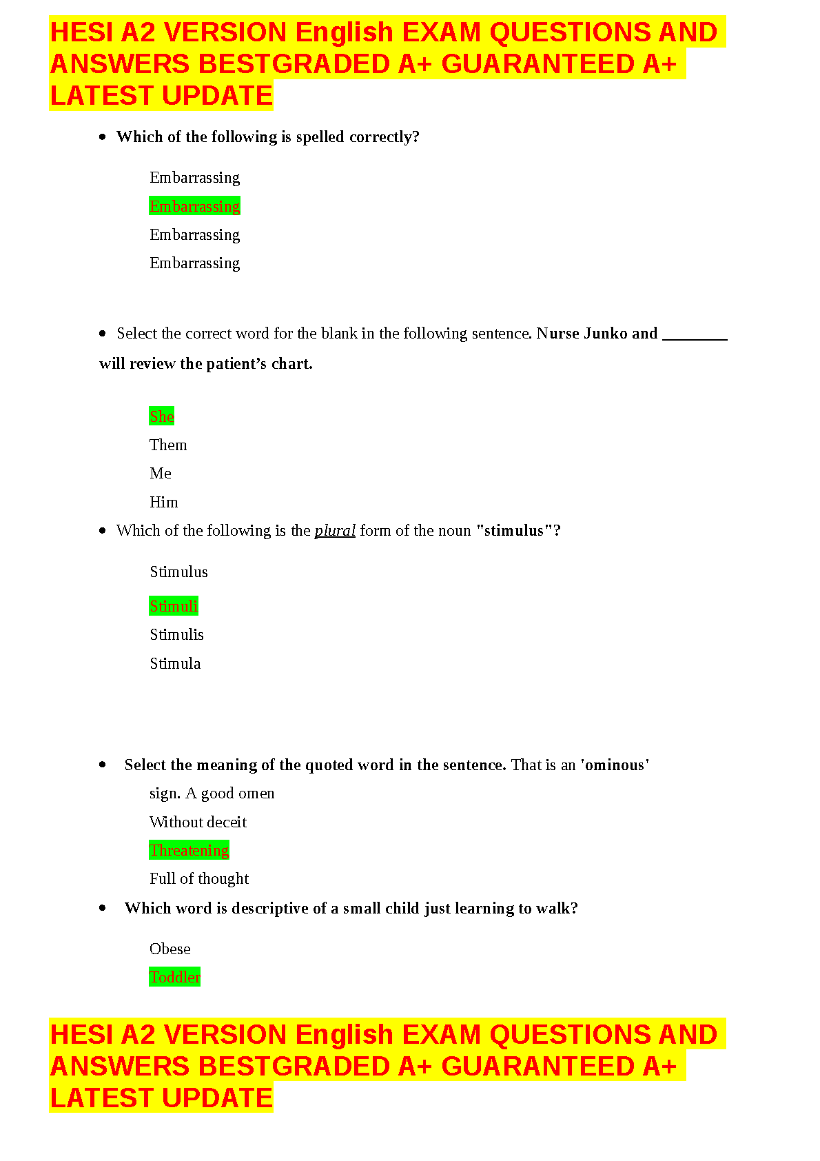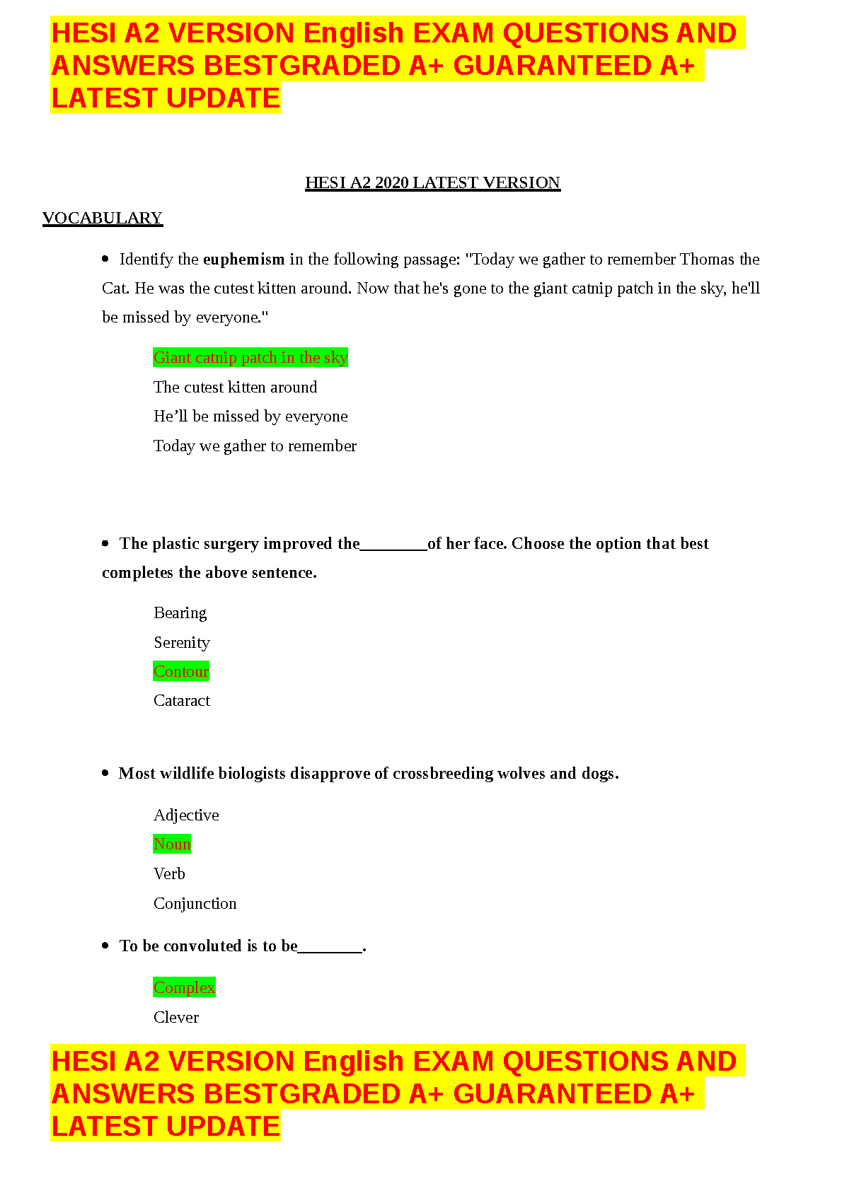 HESI A2 VERSION English EXAM QUESTIONS AND ANSWERS BESTGRADED A+ GUARANTEED A+ LATEST UPDATE 2023/2024. DOWNLOAD on www.hackedexams.com INSTANTLY.