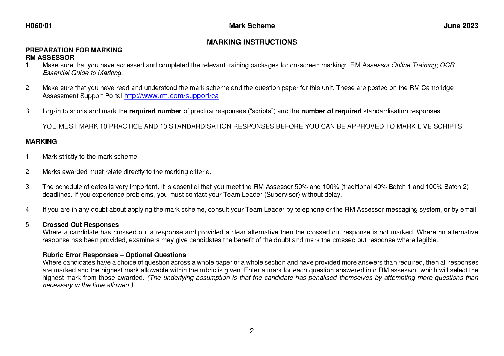 OCR Economics H060/01: Microeconomics AS Level June 2023 Mark Scheme by Oxford Cambridge and RSA Examinations