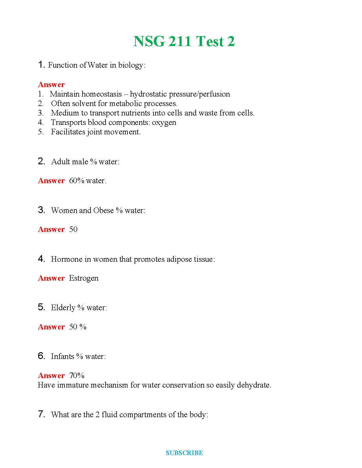 NSG 211 Test 2: Mastering Fluid Balance and Body Composition for Nursing Success