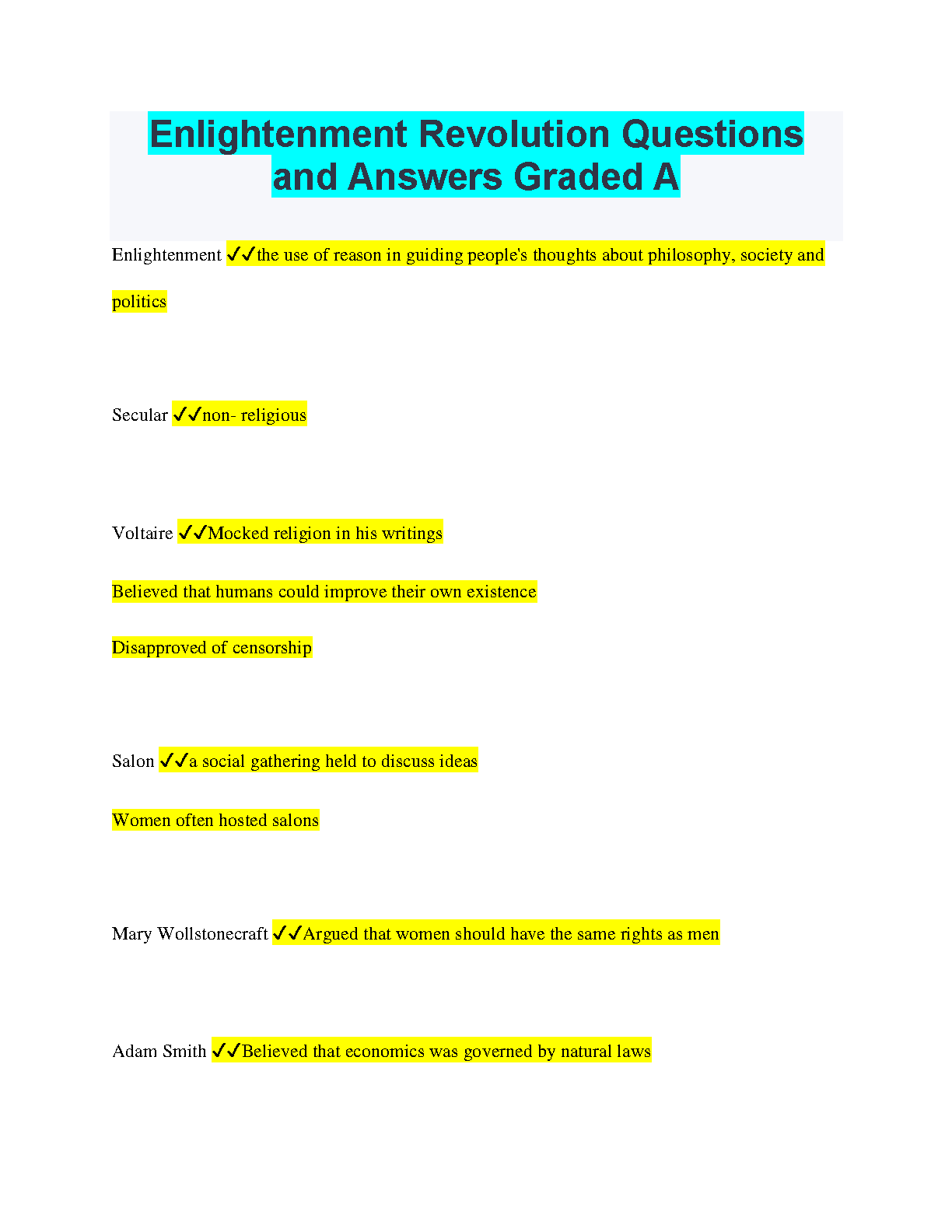 Enlightenment Revolution Questions and Answers Graded A - 2024 Edition