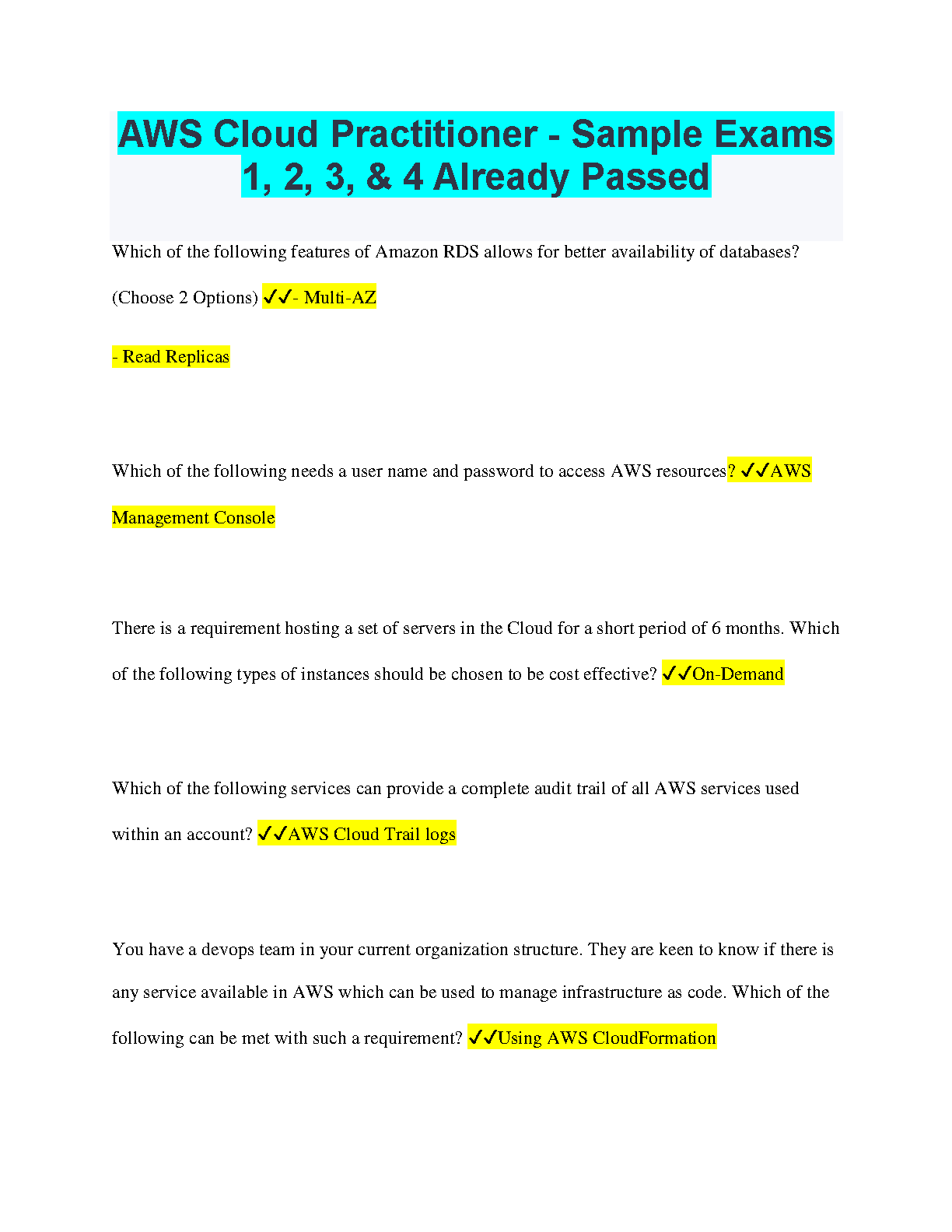 AWS Cloud Practitioner - Sample Exams 1, 2, 3, & 4 Already Passed