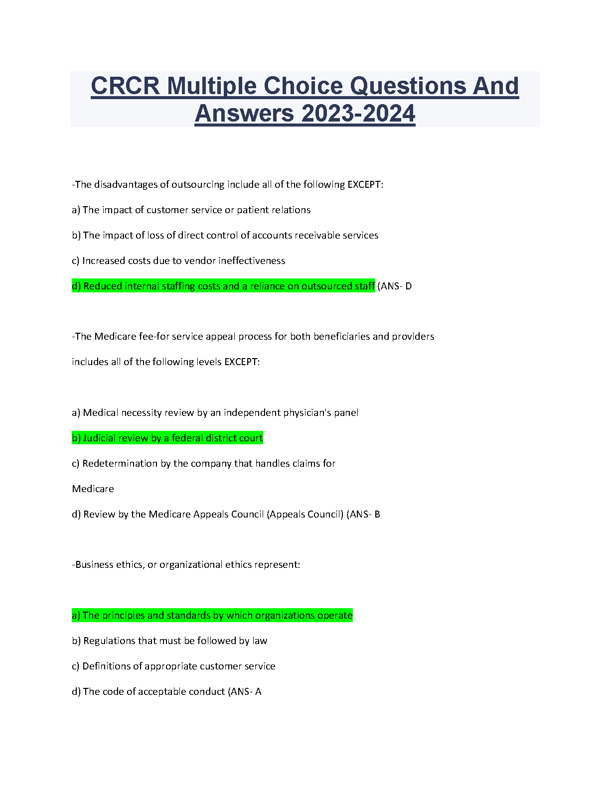 CRCR Multiple Choice Questions and Answers 2023-2024: Ace Your Exams with This Comprehensive Guide