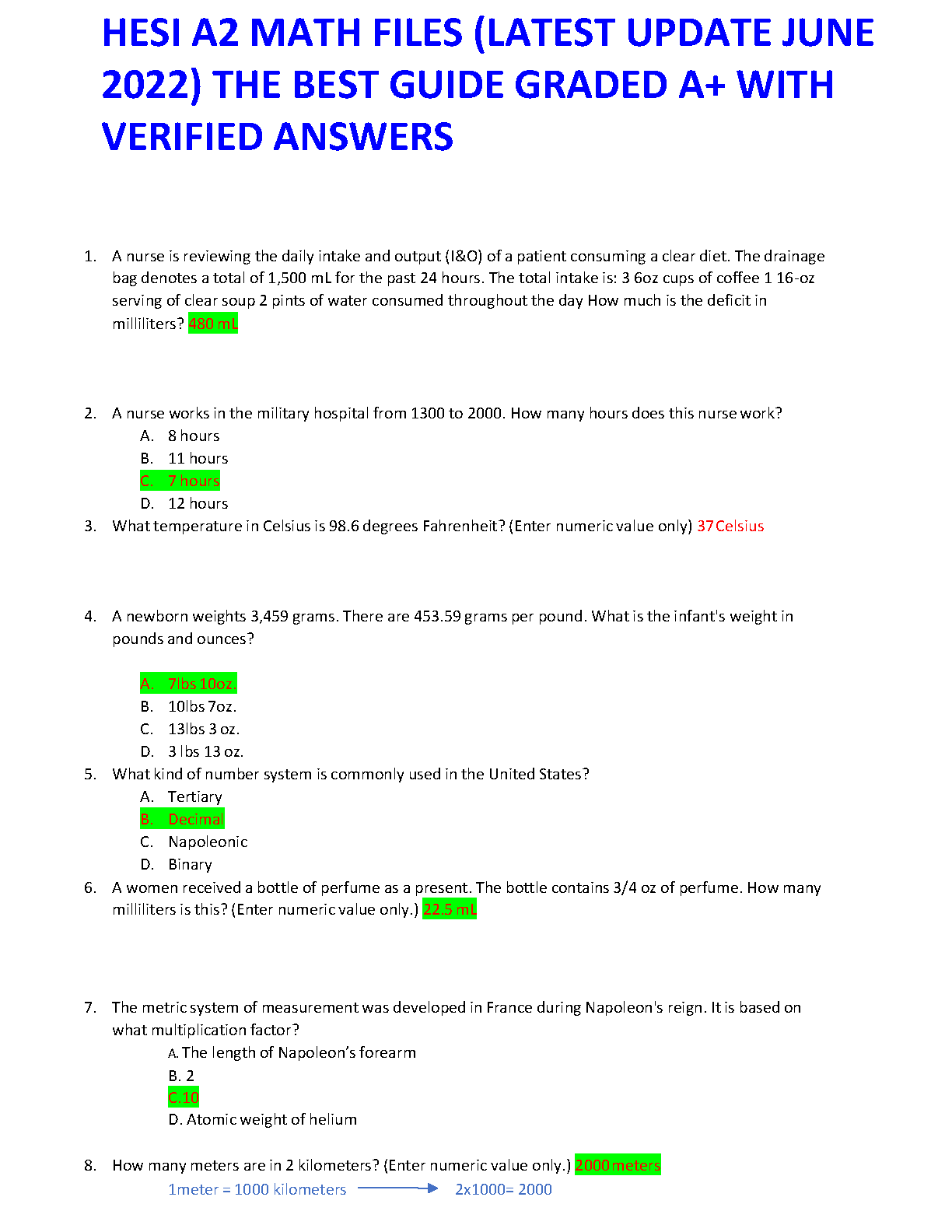 HESI A2 MATH FILES (LATEST UPDATE 2023) THE BEST GUIDE GRADED A+ WITH VERIFIED ANSWERS