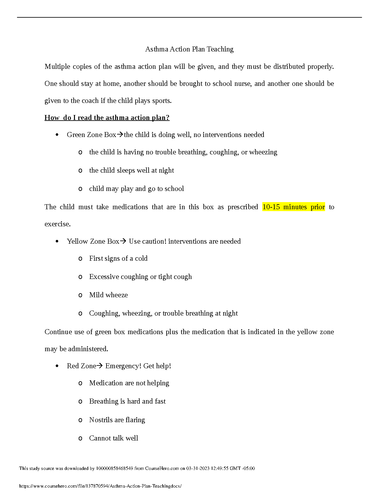 This comprehensive guide provides a clear and concise breakdown of asthma action plans, covering key concepts and practical applications. Designed to support student understanding and facilitate exam success.