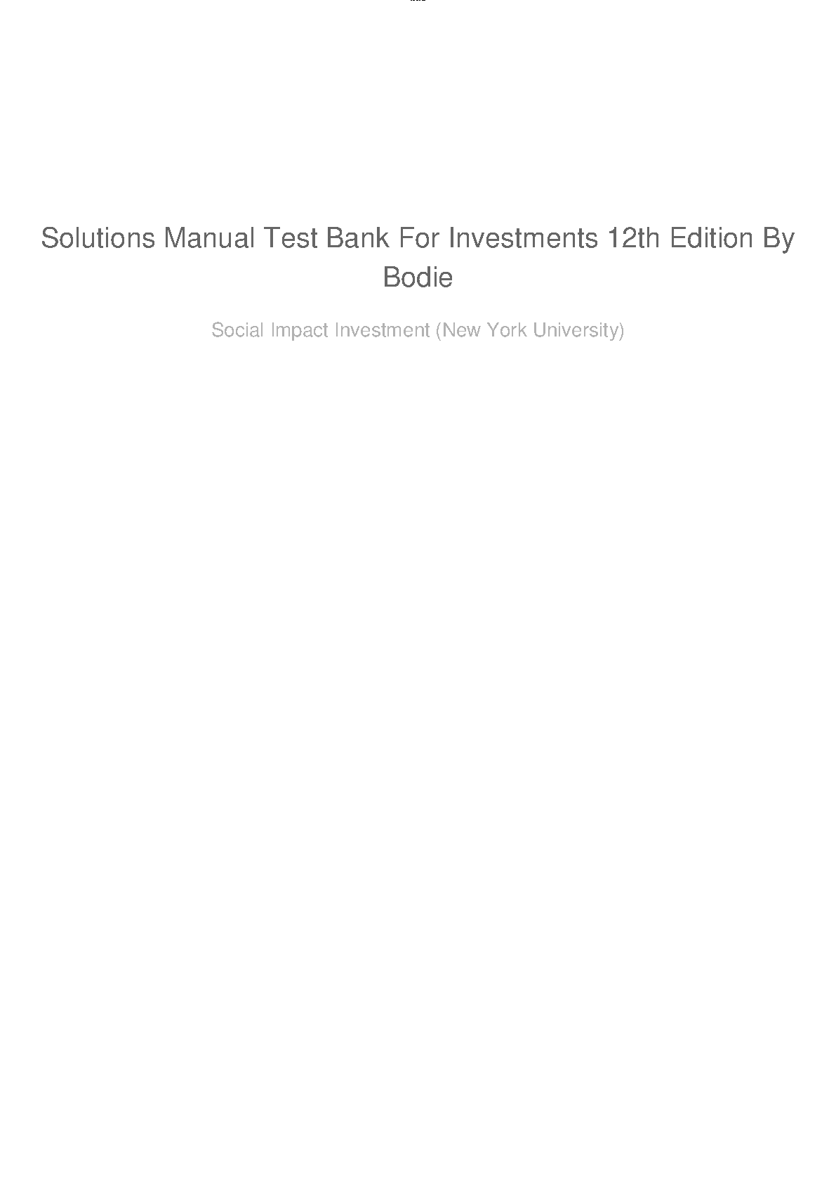 Ace your Investments course with this comprehensive Solutions Manual Test Bank for the 12th Edition. This resource is packed with answers and explanations to all the problems and questions in the textbook, ensuring you understand the concepts and can tackle any exam question with confidence. Get ready to achieve academic success and avoid resits with this essential study tool.