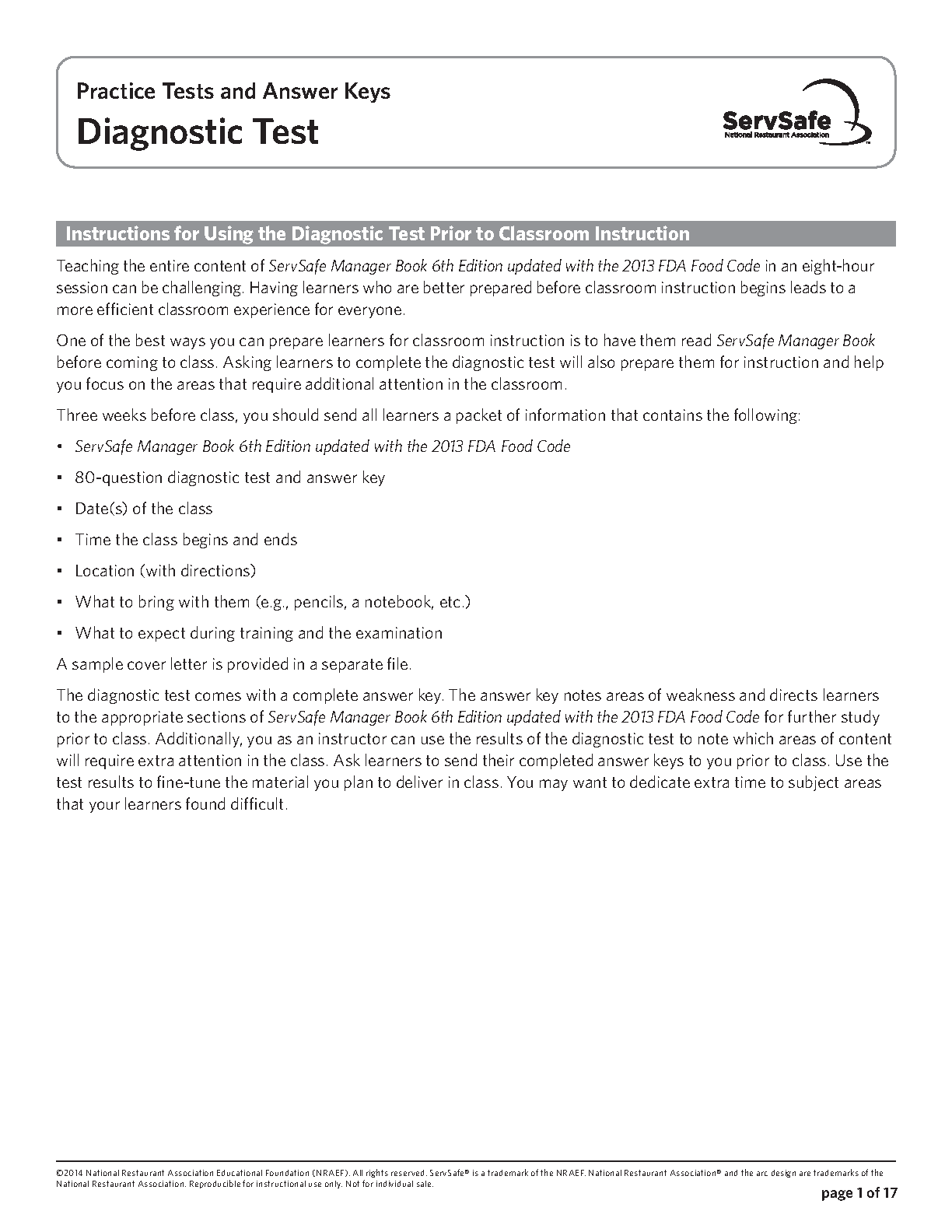 ServSafe Manager Book 6th Edition Diagnostic Test: A Complete Guide to Passing Your Exam on the First Attempt by John C. Williams, Robert A. Donnelly, and David R. Gould