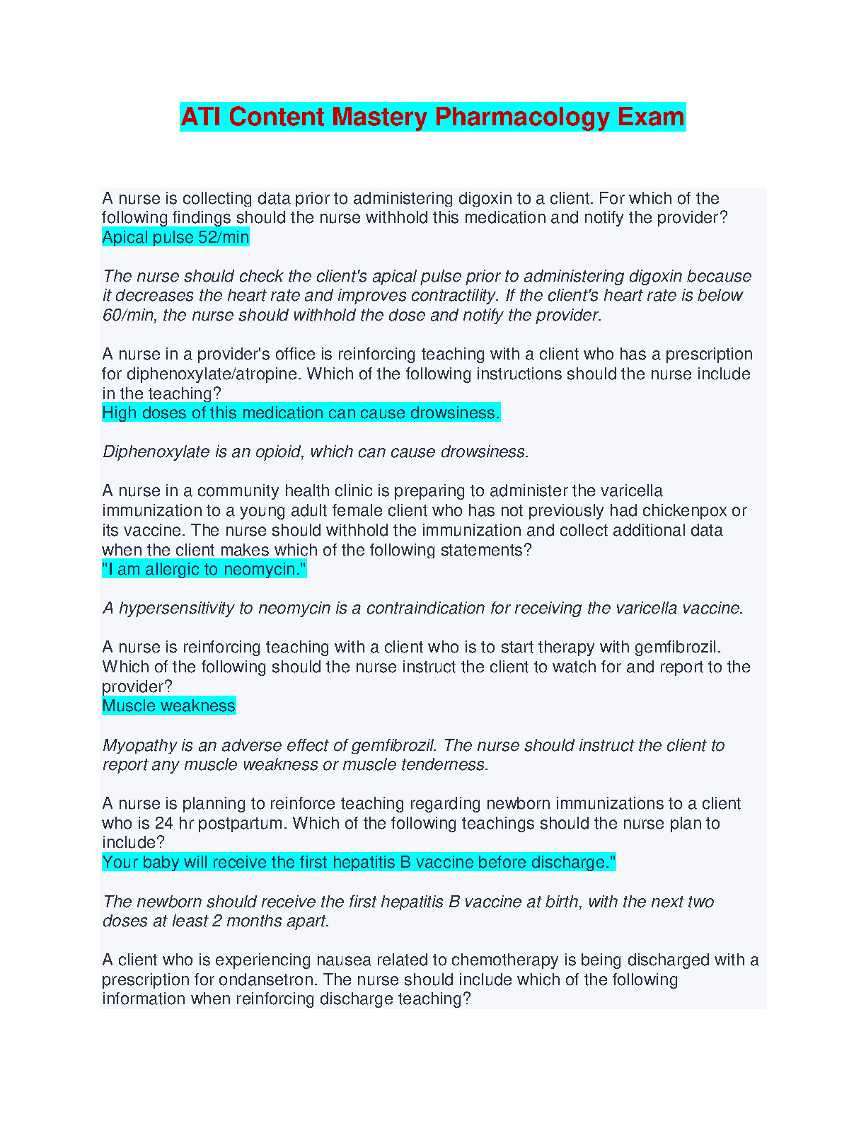 Prepare for your ATI Content Mastery Pharmacology Exam with this comprehensive study guide, packed with the latest content and practice questions to help you ace your exam on the first attempt.