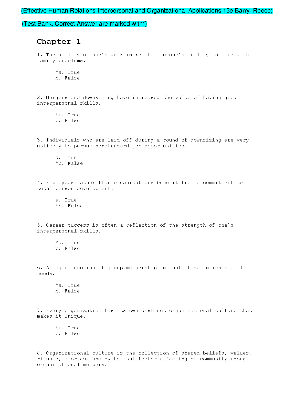 Ace your exams on the first attempt with this comprehensive Test Bank for Effective Human Relations Interpersonal and Organizational Applications, 13th Edition. This invaluable resource features hundreds of multiple-choice questions, true/false statements, and more, allowing you to thoroughly understand and test your knowledge.